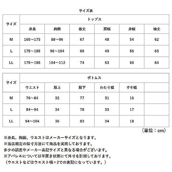 | サイズ | [メンズ] ・Mサイズ ・Lサイズ ・LLサイズ ※サイズについて詳細は、商品画像の中にあるサイズ表をご覧くださいませ。 |