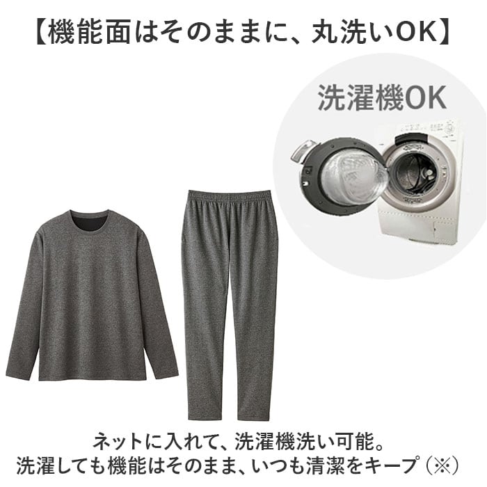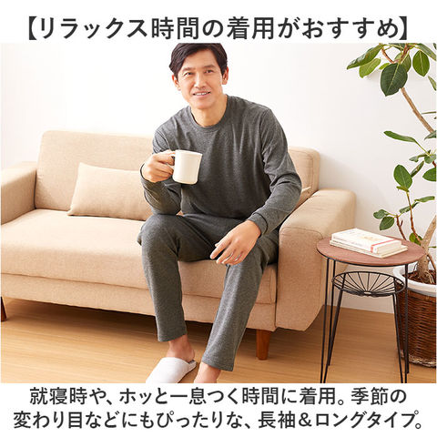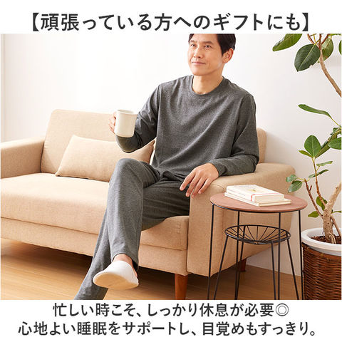 | 商品説明 | 【お休みタイムに疲れをリカバリー】着る疲労回復◎「リカバリーケアメンズ長袖シャツ・ロングパンツ上下セット」。【特殊機能繊維で快適な着心地】セラミックス粉末を独自配合。体温を輻射し、血行促進・疲労回復・筋肉のハリ、コリを緩和。【サラリとした質感でストレスフリー】肌当たりが優しい、ポリエステル&コットン混紡素材。チクチク感もなく、睡眠を妨げない◎【リラックス時間の着用がおすすめ】就寝時やホッと一息つく時間に着用。季節の変わり目などにもぴったりな、長袖&ロングタイプ。【着こなしやすいクルーネック】長袖シャツは胸元をガードしつつ、首元が詰まりすぎないネックデザイン。【締め付けず、自分サイズにフィット】パンツはウエストゴム紐仕様で調節自在、履き心地も軽やか!左右にポケット付き。【機能面はそのままに、丸洗いOK】ネットに入れて、洗濯機洗い可能。洗濯しても機能はそのまま、いつも清潔をキープ。(※)洗濯機の弱モードをご使用ください。繊維自体に練り込まれているため、繰り返し洗濯しても機能を発揮します。【頑張っている方へのギフトにも】忙しい時こそ、しっかり休息が必要◎心地よい睡眠をサポートし、目覚めもすっきり。 |