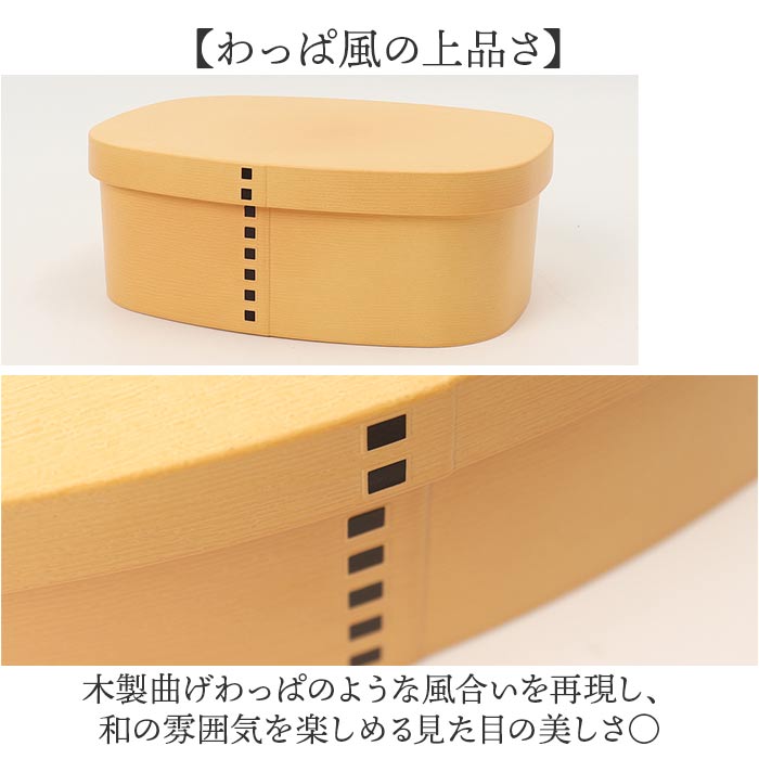 | 商品説明 | 【さっと洗えるわっぱ弁当】わっぱの風合いとお手入れ簡単さを両立、レンジ対応の「わっぱ弁当850ml」【わっぱ風の上品さ】木製曲げわっぱのような風合いを再現し、和の雰囲気を楽しめる見た目の美しさ〇【ななめ式仕切り】ななめに傾かせて固定できる仕切り付きで、詰め方のバリエーションが広がる便利な設計♪【レンジ・食洗機対応】電子レンジも食洗機も使えて、温めも後片付けもラクラクできる毎日使いやすい機能性◎【ワンタッチ開閉式】突起がパッキンに引っかかって蓋がしっかり固定されるからゴムいらず!※逆さまにしたり、フタ部分だけを持って本体を持ち上げないで下さい。【850mlの大容量】たっぷり約850ml入るサイズで、男性も女性も満足できるボリューム感のある容量。 |