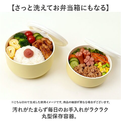| 商品説明 | 【さっと洗えてお弁当箱にもなる】汚れがたまらず毎日のお手入れがラクラク丸型保存容器。【特殊コーティング】内側にはキズや汚れがつきにくい加工が施され洗いやすさ抜群〇【フタをしたままレンジOK】エアー弁付きでフタをしたまま加熱できて時短調理が叶う♪【漏れにくい密閉構造】パッキン付きでしっかり閉まるから持ち運びも安心設計。【コンパクト収納】使用後や収納はフタをしたまま中に収まるので場所を取らない◎【食洗機対応で楽ちん】お手入れは食洗機にお任せで、忙しい毎日を快適にサポート。 |