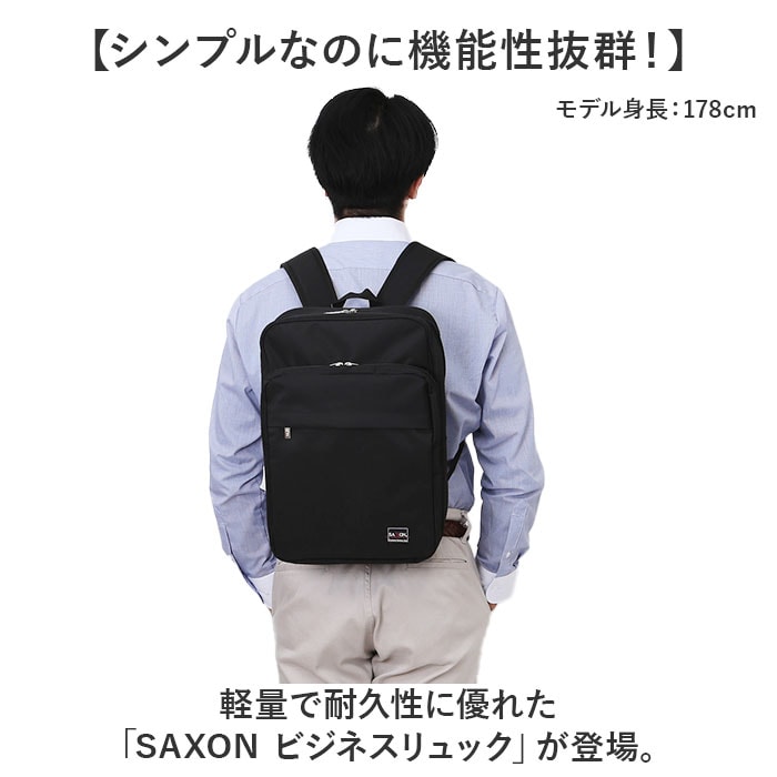| 商品説明 | 【シンプルなのに機能性抜群!】軽量で耐久性に優れた「SAXON ビジネスリュック」が登場。【ダブルファスナー式】開口部はダブルファスナー式でサイドまで大きく開く。中が確認しやすく、出し入れもラクラク。【通勤通学にぴったりサイズ】メインルームはA4サイズが余裕で入るサイズ感。折り曲げたくない書類もきちんと収納。【PCポケットも完備】メインルームの背面側に、大切な機器を優しく保護するクッション付きPCポケットを装備。【充実の多機能ポケット】リュック前面に、スマホなど小物がサッと取り出せる、便利なファスナーポケットを配置。【ちょっとの雨なら大丈夫】汚れや水滴を弾きやすい撥水加工済み。お手入れも拭き取るだけ。(※)完全防水ではありません。【肩に優しいソフトショルダー】ショルダーベルト裏側は、通気性の高いメッシュ素材。ソフトな背負い心地。【ユニセックス仕様】スタイリッシュなスクエア型。ベーシックカラーで使いやすく、幅広い年代で使える!【ポケット仕様】メインルーム:ベルト付きPCポケット×1、メッシュオープンポケット×1フロント:ファスナーポケット×2(大内側:面ファスナー付きポケット×1、フラップ付きポケット×1、ペンホルダー×3) |
