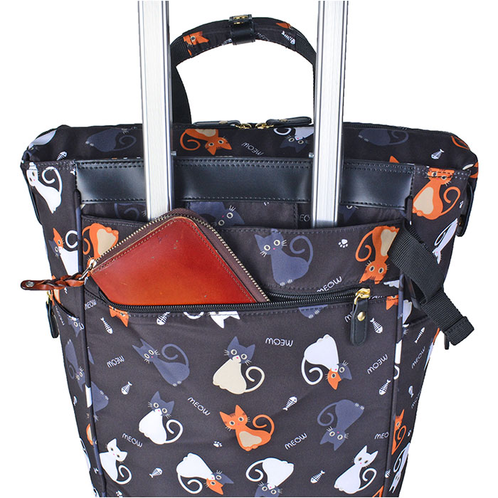 | 商品説明 | 【重たい荷物もスイスイ運べる】重たい荷物もサクッと持ち運べる、心強い相棒☆ショッピングキャリーバッグ。【様々なシーンで使える万能アイテム】お買い物やレジャー、アウトドアシーンで大活躍!耐荷重は15kgで、荷物が増えても大丈夫。【飲み物も入る大容量さが◎】・2Lのペットボトルも収納可能な28L設計。まとめ買いにも対応できるサイズ。【簡易保冷機能を搭載】内側にアルミ蒸着フィルムを使用し、生鮮食品の持ち運びも安心な作り。※1【安定した四輪仕様】キャスターは4輪付いており、安定した走行が可能◎自立するので置き場所にも困らない☆【スムーズに押せる360度回転】・360度回転するキャスターなので、横押しが出来るのもポイント。【載せたカバンが落ちない】バッグ底のゴムバンドと背面のループを台車部分のフレームに取り付ければカバンが落ちない【お財布などの小物とまとめて】フロントにはファスナータイプの収納ルームを設け、お財布やスマホなどをまとめて収納可能。【小物を仕分けて収納】迷子になりがちな小物の定位置に最適なオープンポケットを2つ配置。【傘の置き場所に困らないのも】傘をすぐに差し込めるゴムループをカバンのサイドに配置。【誰でも使いやすい軽量設計】約1.9kgとどなたでも使いやすい軽量設計。シニアな方でも扱いやすい。【ちょっとの雨なら大丈夫】バッグ生地は水滴や汚れを弾く、撥水加工済み。お手入れも拭き取るだけ。※2【カバンとしてそのまま使える】持ち手つきなのでサッと台車から外してそのままお買い物バッグに使うのもオススメ♪【気分の上がる可愛いデザイン】シンプルな無地から大胆な総柄デザインまで!おしゃれな可愛いデザインをご用意。【消臭ネーム付き】優れた消臭機能を持つ織ネームを縫い付けしているので、長く気持ちよく使える◎ |