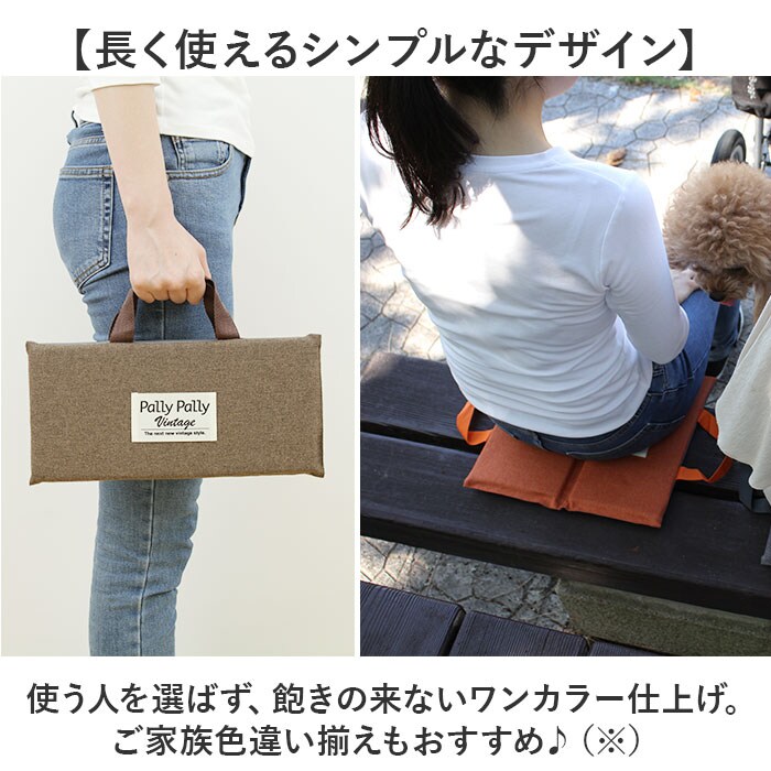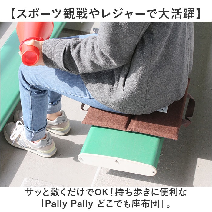 | 商品説明 | 【スポーツ観戦やレジャーで大活躍】サッと敷くだけでOK!持ち歩きに便利な「Pally Pally どこでも座布団」。【長時間座っても、お尻が快適】硬いベンチやレジャーシートの上でも安心◎お尻が痛くならず、冷えもガード。【スリムに携帯&サッと手に取れる】二つ折りにして取っ手を持つだけ、持ち運びがスマート!負担をかけない軽量設計。【丸洗いできてお手入れがラクラク】汚れが気になったら、ネットに入れて洗濯機へ。いつも清潔をキープ。【長く使えるシンプルなデザイン】使う人を選ばず、飽きの来ないワンカラー仕上げ。ご家族色違い揃えもおすすめ♪(※)表面にブランドロゴタグ付き。 |