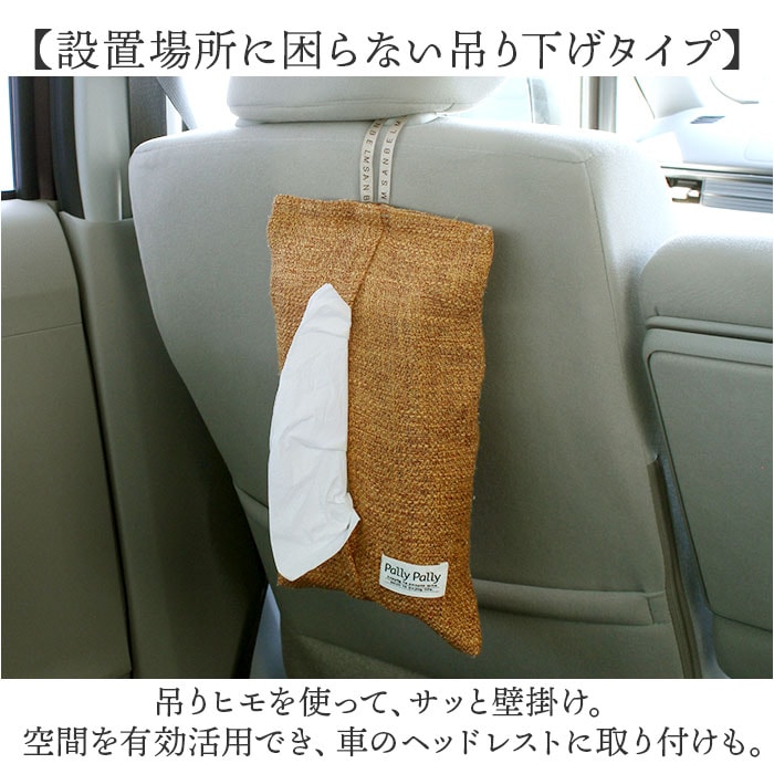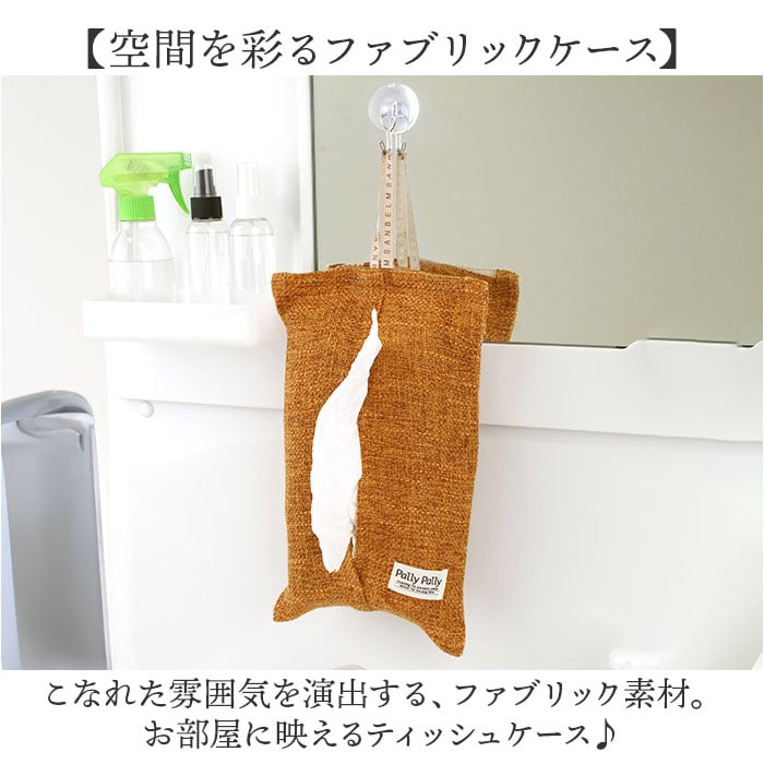 | 商品説明 | 【シンプルでおしゃれなアイテム】生活感の出やすいティッシュがスッキリ!「PallyPally ティッシュケース」。【空間を彩るファブリックケース】こなれた雰囲気を演出する、ファブリック素材。お部屋に映えるティッシュケース♪【設置場所に困らない吊り下げタイプ】吊りヒモを使って、サッと壁掛け。空間を有効活用でき、車のヘッドレストに取り付けも。【そのまま置いて使うことも可能】テーブルなどに置いた状態でもOK。無造作なティッシュも、スマートに!(※1)吊りヒモは、内側に収納可能です。【色んなペーパーアイテムに対応】袋タイプ・箱タイプのティッシュ、ペーパータオルも収納可能。口が大きく、取り出しやすい♪(※2)袋・箱サイズ:W23×D12×H8cmまで対応。【使い方が簡単でノンストレス】面ファスナー式の上部を開けて、ティッシュをIN!交換もスムーズ。【丸洗いできてお手入れがラクラク】汚れが気になったら、ネットに入れて洗濯機へ。いつも清潔をキープ。【飽きが来ず長く使えるデザイン】どんなスタイルにもマッチするワンカラー仕上げ。ブランドロゴタグ付き。 |