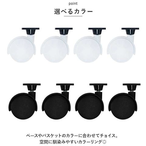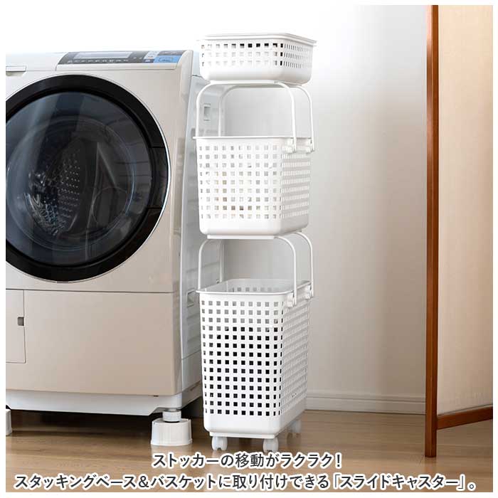 | 商品説明 | ストッカーの移動がラクラク!スタッキングベース&バスケットに取り付けできる「スライドキャスター」。【簡単にセットできるスライド式】当店別ページにて販売中の、スタッキングベースとランドリーバスケットLに対応。本体四隅に奥までスライドさせて取り付けるだけ。(※スタッキングベース:lbb06c、スタッキングランドリーバスケットL:lbb12c、スタッキングランドリーバスケットセット:lbb111215set4。アルファベットと数字で組み合わせたワードが商品コードとなります。)【移動がスムーズ】キャスターを取り付ければ、押すだけでスイスイ移動できる!洗濯物が多い時などもストレスフリー◎耐荷重は50kg。【傷つきをガード】フローリングを傷つけにくいポリプロピレン製。お部屋内での移動も安心。【選べるカラー】ベースやバスケットのカラーに合わせてチョイス。空間に馴染みやすいカラーリング◎ |
