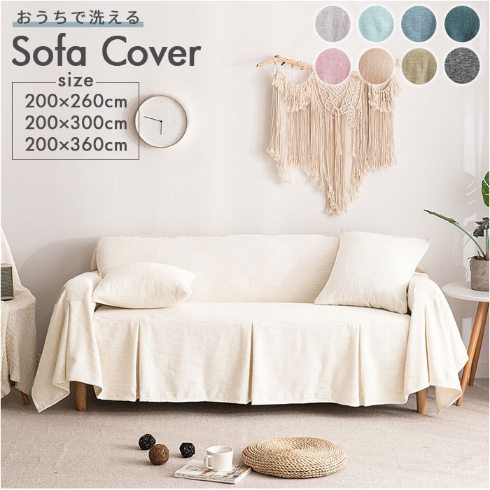 | 商品説明 | 肌触りが心地いい♪ソファーカバーが新登場。肌触りが良いだけではなく、通気性もある綿麻混合生地のリネン素材を使用しているからオールシーズンで使える◎一枚の布だから、面倒な装着作業がなく被せるだけ。ソファーだけじゃなく、ベッドやテーブルクロスなど使い方様々♪お部屋の雰囲気を素敵にしてくれる、優しめの淡いカラーバリエーション。お部屋のイメージを手軽に変えられるので、気分転換にもなるアイテム♪洗濯はネットに入れて洗濯機でOK!汚れてもお手入れが楽なのも嬉しいポイント。(選択モードは、おしゃれ着、手洗いモードをおススメします。) |