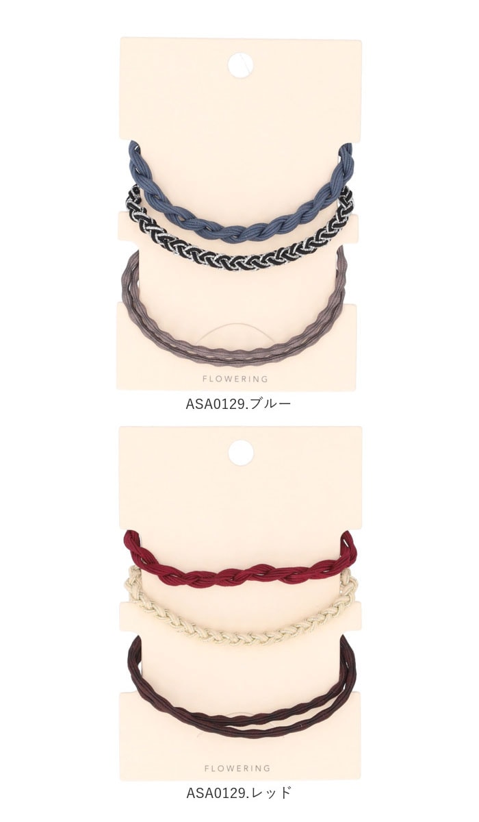 | 商品説明 | 乾燥が気になる季節のいや~な「パチパチ」を防いでくれる!可愛くて便利な静電気軽減ヘアゴム。髪に結んだり、身に付けるだけで、空気触媒加工されたゴムが身体にたまった電気を効果的に逃がし、静電気防止対策に役立つ◎(※静電気軽減の効果は、気温や湿度、身体の状態により個人差があります。)ヘアゴムとしてだけでなく、手首に付けてブレスレット代わりにしても可愛い!(※お肌や髪に直接触れるように着用してください。)それぞれデザインや素材感の異なる、お得な3本セット。(※ASA0036シリーズは、ボリューム感のある太ゴム、ねじりゴム、ラメカラーの3本セット。ASA0037シリーズは、2種類の編み込みゴムと2重ゴムの3本セットになります。)ドアノブや人に触れた時にビリッときたら・・・すぐに試してみて♪お友だちへのプチギフトにもオススメ。 |