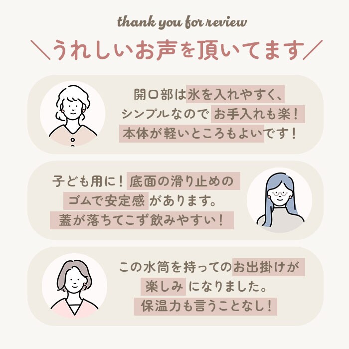 | 保冷効力 | 9度以下(6時間) 保冷効力とは、室温20±2度の環境において、製品に冷水を容量分入れて、キャップユニットを付け縦置きした状態で湯温が4度±1度の時から6時間放置した場合におけるその水の温度です。 |