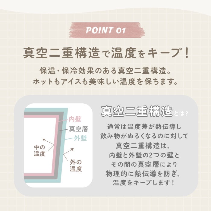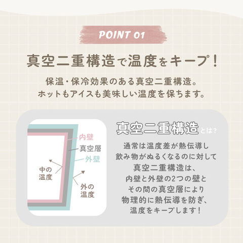 | 素材 | [内ビン・口がね]ステンレス鋼 [胴部]ステンレス鋼(アクリル系樹脂塗装) [キャップ・フタ・飲み口・リング]ポリプロピレン [パッキン]シリコーンゴム [底板]エラストマー |