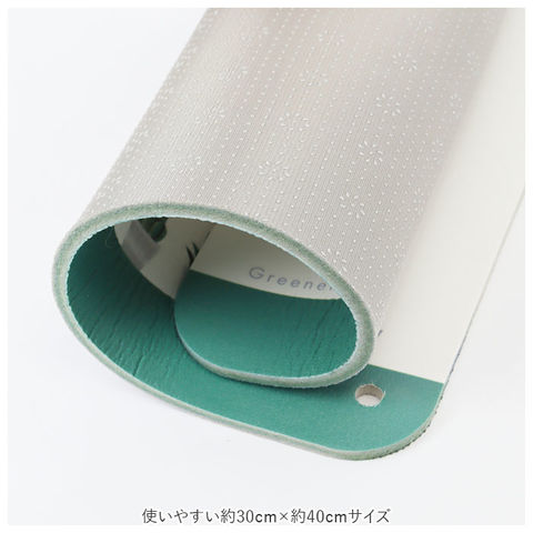 | 素材 | [本体表面]アクリル樹脂、珪藻土 [本体中材]ポリウレタン、珪藻土 [本体裏面]ポリエステル [裏面すべり止め]塩化ビニル樹脂 |