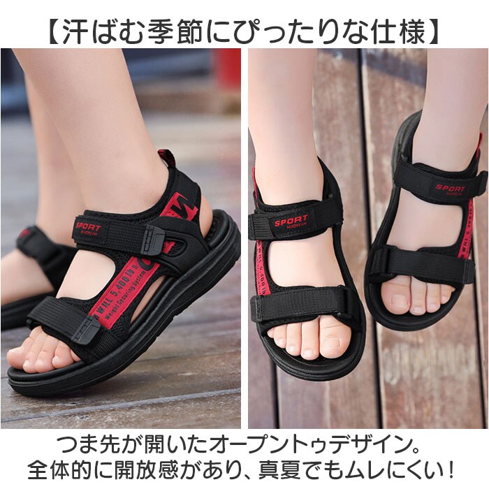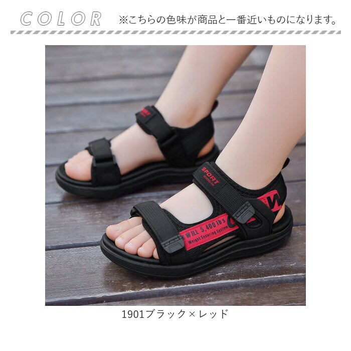 キッズ サンダル 軽量【1901ブラック×レッド】【34(22.5cm)】