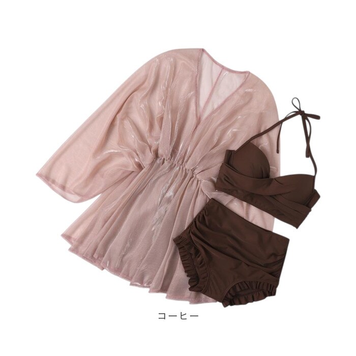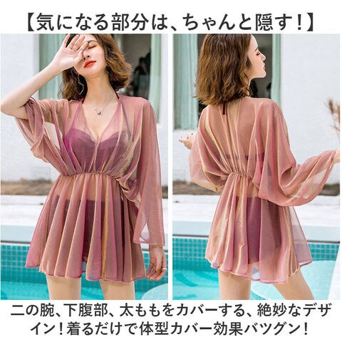 | 商品説明 | 【ふわっと肌見せでヘルシーに♪】大人っぽさはそのままに、しっかり体型カバー!「ワンピース水着」が登場。【華やかなキラッとトップス☆】透け感のあるトップスには、キラッと加工をON!太陽の光で華やかにきらめき、オシャレ度UP!【気になる部分は、ちゃんと隠す!】二の腕、下腹部、太ももをカバーする、絶妙なデザイン!着るだけで体型カバー効果バツグン!【トレンドデザインのビキニがGOOD】トップスを脱いで、ビキニとしても使用OK!ハイウエスト+ホルターネックでおしゃれ魅せ。【立体パッドで美胸に♪】ふんわりバストを作る、立体パッドが嬉しいポイント。盛りすぎない自然な仕上がりに。【お洋服みたいに使うのも◎】まるでお洋服のようなおしゃれデザイン。リゾートやBBQなど、水濡れOKの服として使うのも◎ |