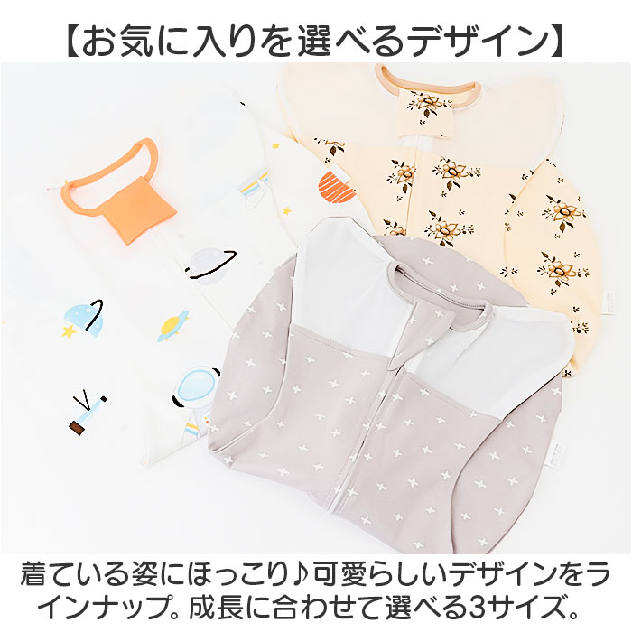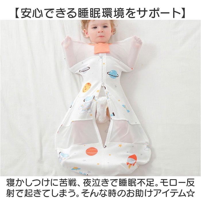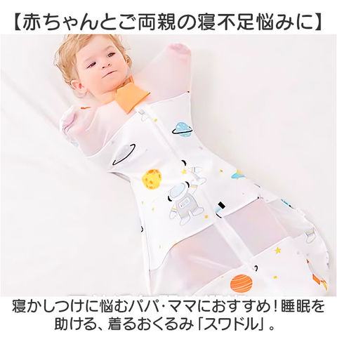 | 商品説明 | 【赤ちゃんとご両親の寝不足悩みに】寝かしつけに悩むパパ・ママにおすすめ!睡眠を助ける、着るおくるみ「スワドル」。【安心できる睡眠環境をサポート】寝かしつけに苦戦、夜泣きで睡眠不足。モロー反射で起きてしまう。そんな時のお助けアイテム☆【汗をかいてもサラリと快適な着心地】ムレにくいコットン素材に、メッシュ生地をプラス。通気性も良く、朝までぐっすり。【体を締め付けずストレスフリー】伸縮性に優れており、スワドルの中でも手足を自由に動かせるのがポイント。【あんよもゆったり、ひょうたん型】足元はまあるく、ゆったりとしたフォルム。モロー反射を抑制し、赤ちゃんの体にフィット。【ダブルジッパーで着脱もスムーズ】上からも下からも開くフロントファスナー。着替えも寝ている間のおむつ替えも手間取らない♪【お顔のひっかきやケガの防止に】両手を包み込むデザイン&赤ちゃんに金具が触れにくい、ファスナーカバーを装備。【お気に入りを選べるデザイン】着ている姿にほっこり♪可愛らしいデザインをラインナップ。成長に合わせて選べる3サイズ。 |