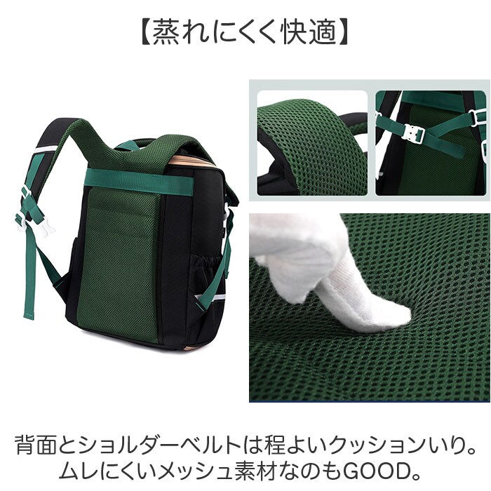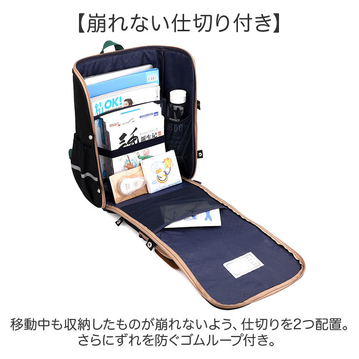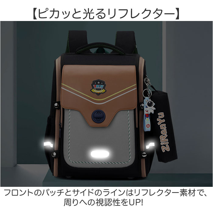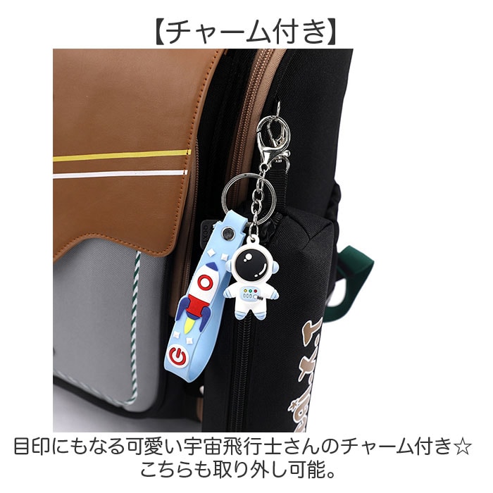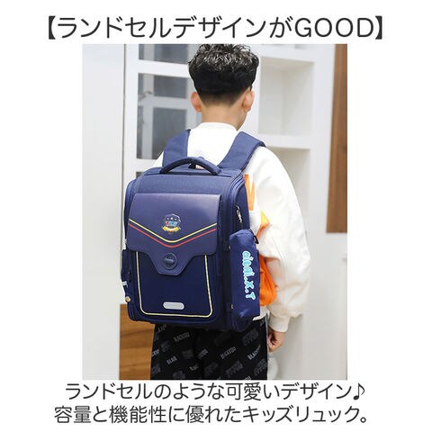 | 商品説明 | 【ランドセルデザインがGOOD】ランドセルのような可愛いデザイン♪容量と機能性に優れたキッズリュック。【機能性もデザイン性も◎】ランドセルのような丸みがあるボックス型!可愛い見た目と収納力が嬉しいポイント。【大きく開いて出し入れスムーズ】メインルームはガバッと大きく開く構造。教科書やノートの出し入れがスムーズに完了。【崩れない仕切り付き】移動中も収納したものが崩れないよう、仕切りを2つ配置。さらにずれを防ぐゴムループ付き。【名前タグ付き】名前や学年、学校名、電話番号が記載できる名前タグをメインルーム内に配置。※【収納したものが見えるポケット】内部の側面には2つメッシュポケットが配置。中が透けて見えるのでパッと見つけやすい仕様。【ロック付きフラップポケット】フロントのポケットはファスナーを閉じ忘れても中身が飛び出さないロック機能付き。【サッと取り出せるポケット】ペットボトルや折りたたみ傘の収納に便利なサイドポケットを配置。【蒸れにくく快適】背面とショルダーベルトは程よいクッションいり。ムレにくいメッシュ素材なのもGOOD。【楽な背負い心地に】チェストベルトとショルダーベルトで体に沿う楽な背負い心地に。【ピカッと光るリフレクター】フロントのパッチとサイドのラインはリフレクター素材で、周りへの視認性をUP!【底鋲付きで汚れにくい】底鋲を4つ配置し、地面や床に置いても汚れが付きにくい♪【取り外し可能なポーチ】ちょっとした小物を入れるのに便利なポーチ付属。ナスカンで取り外し可能。【チャーム付き】目印にもなる可愛い宇宙飛行士さんのチャーム付き☆こちらも取り外し可能。【ポケット仕様】メインルーム・・・仕切り×2、メッシュポケット×2フロント・・・ファスナーポケット×1両サイド・・・オープンポケット×1ずつ【付属品】ポーチ×1、チャーム×1 |