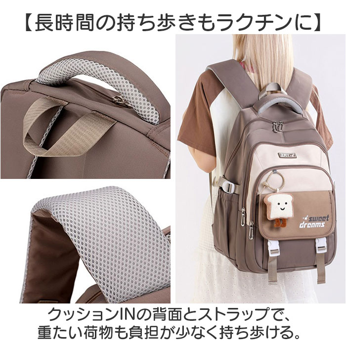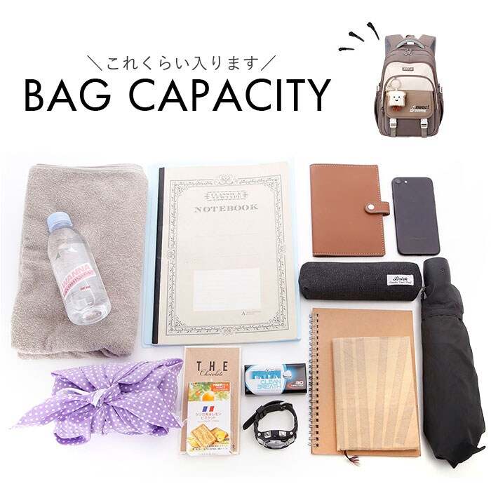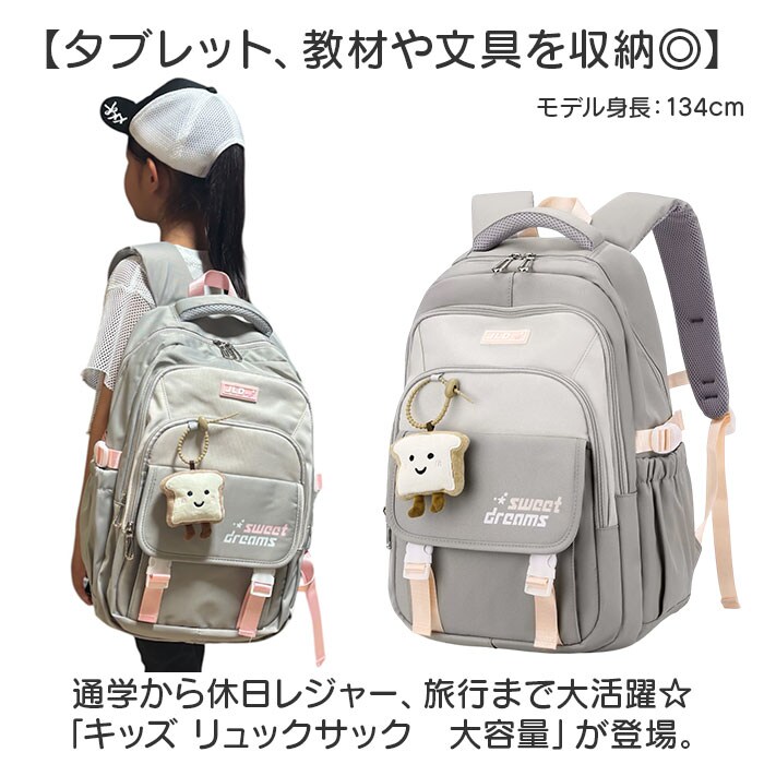 | 商品説明 | 【タブレット、教材や文具を収納◎】通学から休日レジャー、旅行まで大活躍☆「キッズ リュックサック 大容量」が登場。【抜群の収納力が自慢!】ざっくり入る、大きめのメインルーム。水筒やお弁当、教科書やポーチなどをまるっと収納。【クッションINポケットを搭載】メイン収納には、タブレットなどの電子機器を持ち歩いても安心の専用ポケットつき!【アウトドアにも最適な撥水生地】水をはじく、撥水生地を採用。突然の雨でも慌てなくてOK。※完全防水ではありません。【充実の小物ポケットを搭載】小物を仕分けて整理整頓できる、ポケットを配置。ペンポケットや外側ポケットがいっぱい!【おしゃれさんも満足の可愛さ☆】リュックのデザインやカラーはもちろん、可愛いマスコットがついた大満足のおしゃれさ!【長時間の持ち歩きもラクチンに】クッションINの背面とストラップで、重たい荷物も負担が少なく持ち歩ける。【キャリーオンベルトつき】キャリケースにつけて持ち運べる、ベルトを搭載。家族とのお出かけにもぴったり!【男の子も女の子もOK☆】幅広いカラーバリエーションをご用意。性別関係なく使えるのが嬉しいポイント。【ポケット仕様】メイン:PCポケット×1背面:ファスナーポケット×1サイド:オープンポケット×2フロント収納:オープンポケット×3、ペンポケット×2前面:ファスナーポケット×1、フラップポケット×1 |