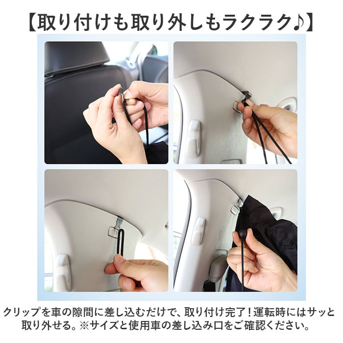 | 商品説明 | 【車内の目隠しや日よけ対策に◎】カーテンのように使えて便利!「車用カーテン サンシェード」が登場。【レジャーや車中泊で大活躍☆】車内での仮眠や着替えなど、目隠しがしたい時に役立つアイテム。後部座席をカバー◎【取り付けも取り外しもラクラク♪】クリップを車の隙間に差し込むだけで、取り付け完了!運転時にはサッと取り外せる。※サイズと使用車の差し込み口をご確認ください。【カーテンみたいな使い心地】・2枚のカーテンを面ファスナーで留める仕様。付属の紐で結んだり、お好みで開閉できて便利。【簡単コンパクトに収納可能】使わない時は小さく折りたたんで収納OK。持ち運びしやすいのが嬉しいポイント。 |