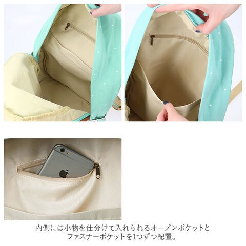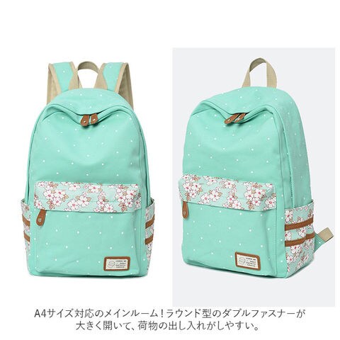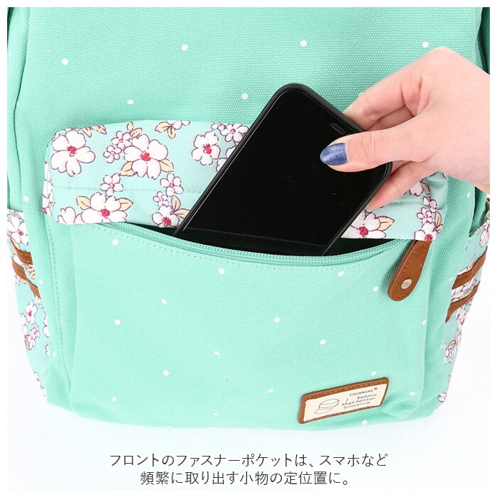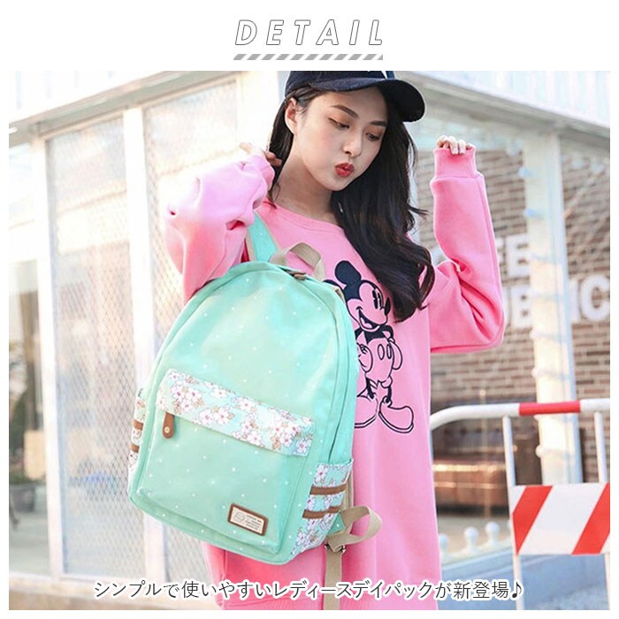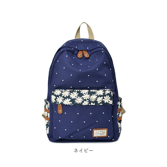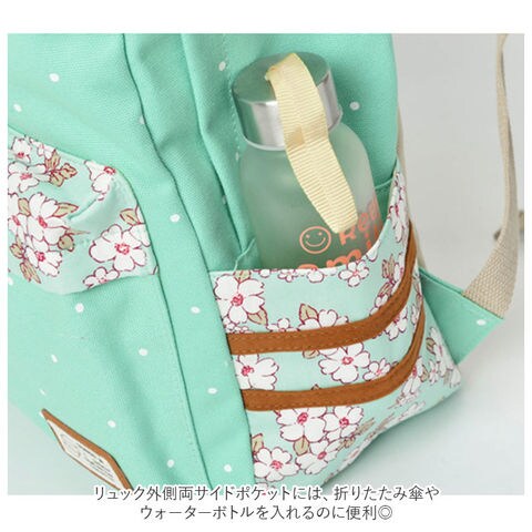| 商品説明 | シンプルで使いやすいレディースデイパックが新登場♪ドット柄の生地に花柄の切り返しが可愛いデザイン♪(※カラーにより花のデザインが異なる場合がございます。予めご了承ください。)A4サイズ対応のメインルーム!ラウンド型のダブルファスナーが大きく開いて、荷物の出し入れがしやすい。内側には小物を仕分けて入れられるオープンポケットとファスナーポケットを1つずつ配置。フロントのファスナーポケットは、スマホなど頻繁に取り出す小物の定位置に。リュック外側両サイドポケットには、折りたたみ傘やウォーターボトルを入れるのに便利◎通勤通学、マザーバッグにも使いやすい容量。 |