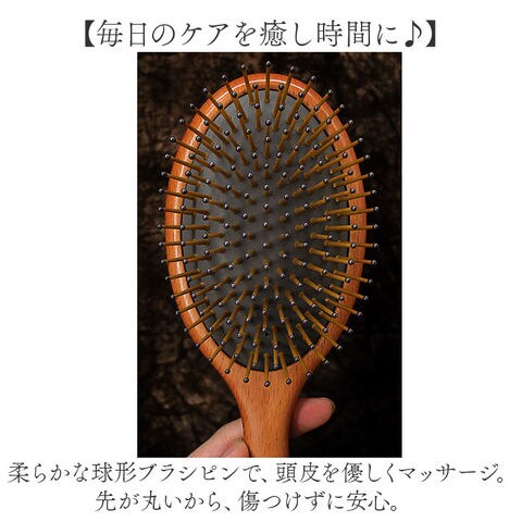 | 商品説明 | 【頭皮を優しくマッサージ♪】極上のヘアケアタイムに。「ヘアーブラシ くし」が登場。【毎日のケアを癒し時間に♪】柔らかな球形ブラシピンで、頭皮を優しくマッサージ。先が丸いから、傷つけずに安心。【呼吸するようなエアクッション】空気が出入りし、まるで呼吸をしているかのような高弾力のエアクッションを搭載。【ワイドなブラシ面でたっぷりとかす】ロングヘアもしっかりとかせる、ワイドでブラシ面で使いやすさUP。絡まりやすい髪にも◎【手になじむウッド素材】なめらかで艶のある、ウッド素材のハンドル。手に持つほどに心地よく、ケアタイムが快適に♪【洗面所をおしゃれに彩る】そのまま置くだけで様になる、ウッドデザインがGOOD。インテリア性のあるヘアアイテム。【ギフトにもオススメ☆】お誕生日や母の日などのちょっとしたプレゼントにもぴったり!贅沢アイテムはきっと喜ばれる♪ |