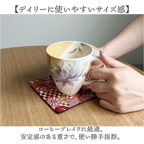 | 商品説明 | 【和の上品な雰囲気で特別感アップ】お揃いで使えて、テーブルが華やかに。「ペアマグカップ ちりめん木箱入り」が新登場。【気持ちがパッと明るくなる花絵柄】程よい存在感のあるフラワーデザイン。風合い漂う、岐阜県で伝統的な美濃焼マグ。【デイリーに使いやすいサイズ感】コーヒーブレイクに最適。安定感のある重さで、使い勝手抜群。【電子レンジで温め直しOK】電子レンジ対応で、冷めてしまったドリンクを温めることも可能。【マグと相性の良いコースター付き】鮮やかなちりめん柄のコースター。和カフェのような気分を味わえる!【記念やお礼のギフトにぴったり】高級感のあるちりめん木箱入り。誕生日やお祝い返しに、特別な贈り物♪ |