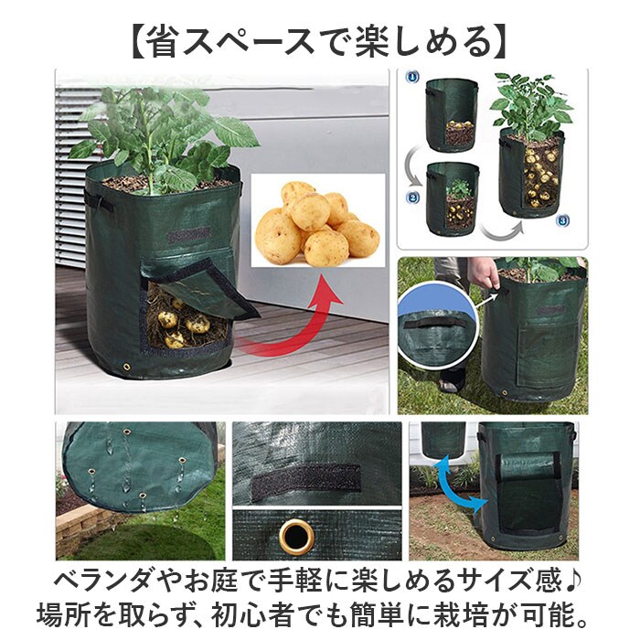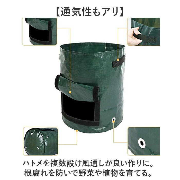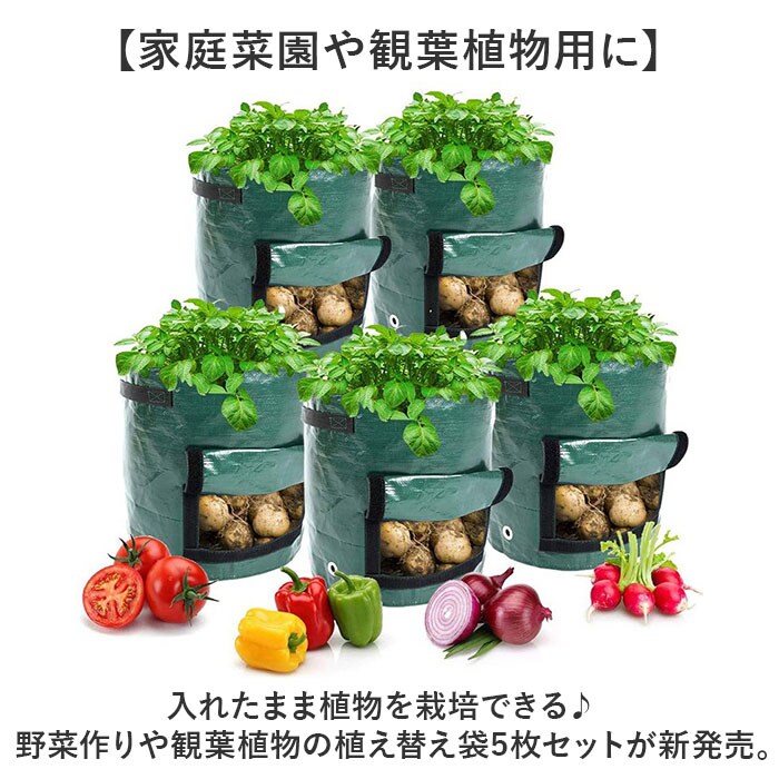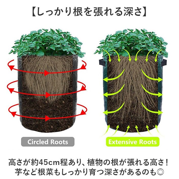 | 商品説明 | 【家庭菜園や観葉植物用に】入れたまま植物を栽培できる♪野菜作りや観葉植物の植え替え袋5枚セットが新発売。【しっかり根を張れる深さ】高さが約45cm程あり、植物の根が張れる高さ!芋など根菜もしっかり育つ深さがあるのも◎【収穫が簡単に】専用の取り出し窓から収穫ができるので、掘り返す手間がなく収穫完了♪【通気性もアリ】ハトメを複数設け風通しが良い作りに。根腐れを防いで野菜や植物を育てる。【軽量で持ち運び簡単】軽量かつハンドル付きで持ち運びしやすいのも嬉しいポイント。【省スペースで楽しめる】ベランダやお庭で手軽に楽しめるサイズ感♪場所を取らず、初心者でも簡単に栽培が可能。 |