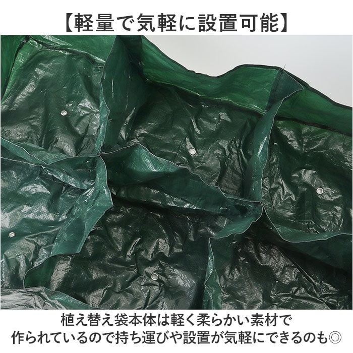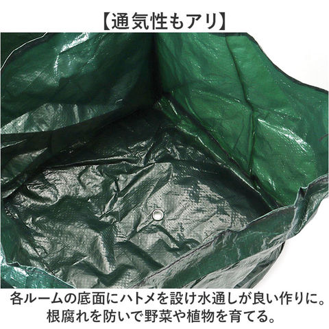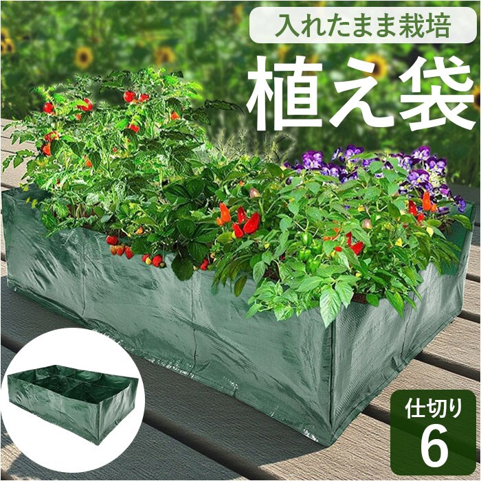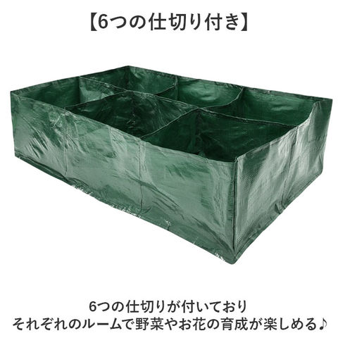 | 商品説明 | 【家庭菜園や観葉植物用に】入れたまま植物を栽培できる♪野菜作りやお花などの植え替え袋が新発売。【6つの仕切り付き】・6つの仕切りが付いておりそれぞれのルームで野菜やお花の育成が楽しめる♪【通気性もアリ】各ルームの底面にハトメを設け水通しが良い作りに。根腐れを防いで野菜や植物を育てる。【省スペースで楽しめる】ベランダやお庭で手軽に楽しめるサイズ感♪場所を取らず、初心者でも簡単に栽培が可能。【軽量で気軽に設置可能】植え替え袋本体は軽く柔らかい素材で作られているので持ち運びや設置が気軽にできるのも◎ |
