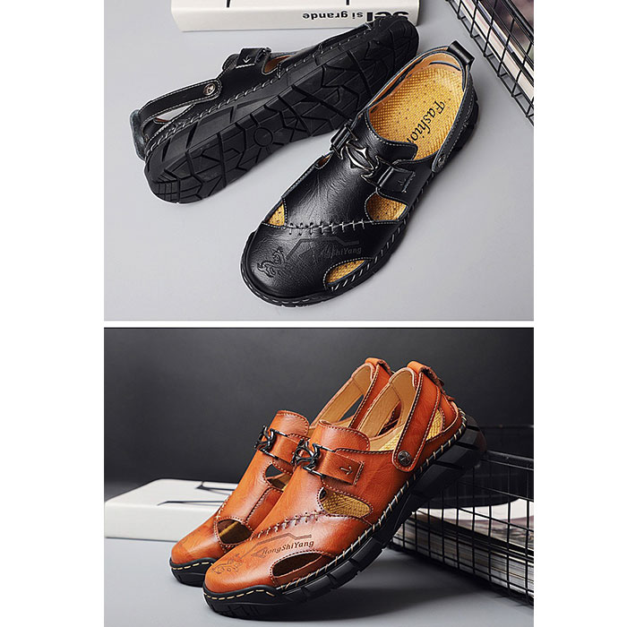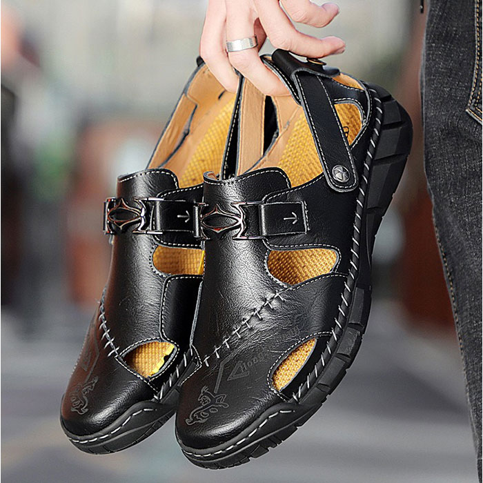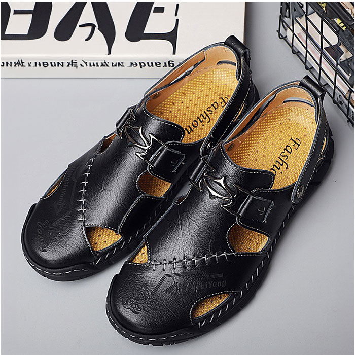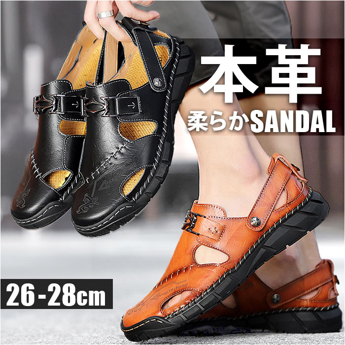 メンズサンダル 本革 レザー【ブラック】【42(27cm)】