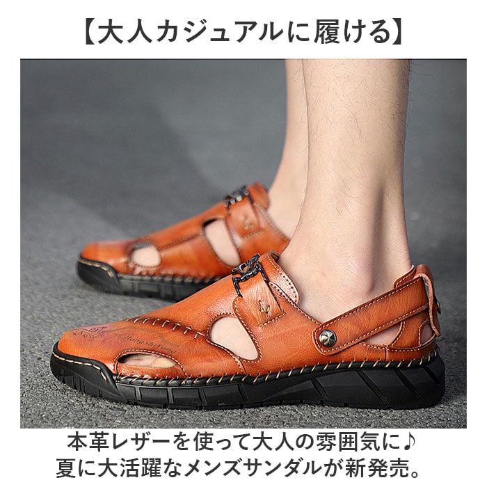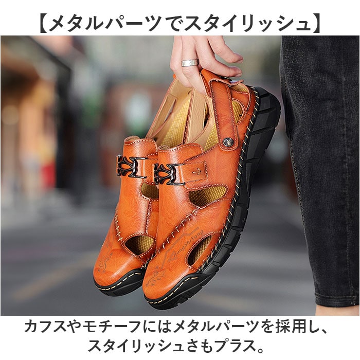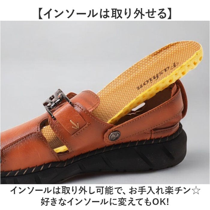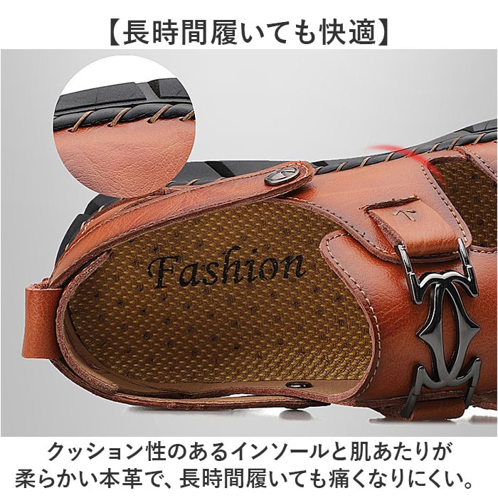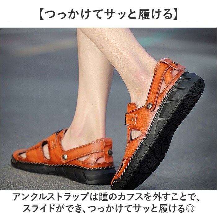| 商品説明 | 【大人カジュアルに履ける】本革レザーを使って大人の雰囲気に♪夏に大活躍なメンズサンダルが新発売。【レザーで魅せる大人の雰囲気】レザー生地で、大人っぽさを表現♪カジュアルだけど上品な雰囲気が魅力◎【メタルパーツでスタイリッシュ】カフスやモチーフにはメタルパーツを採用し、スタイリッシュさもプラス。【長時間履いても快適】クッション性のあるインソールと肌あたりが柔らかい本革で、長時間履いても痛くなりにくい。【つっかけてサッと履ける】アンクルストラップは踵のカフスを外すことで、スライドができ、つっかけてサッと履ける◎【インソールは取り外せる】インソールは取り外し可能で、お手入れ楽チン☆好きなインソールに変えてもOK!【滑りにくいので雨の日も安心】ソール部分は凸凹がしっかり刻まれており、滑りにくいのでレジャーシーンでも活躍☆【ロングシーズン活躍するアイテム】サンダルだけでなく、ソックスINで履く、こなれたスタイルもオススメ☆ロングシーズン活躍 |