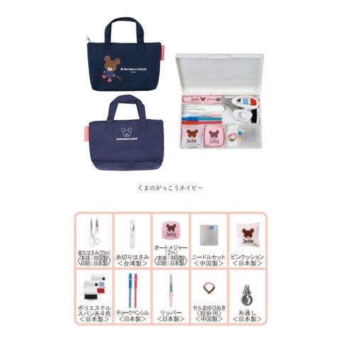 キャラクター ソーイングセット ファスナーバッグ トートタイプ【くまのがっこうネイビー】