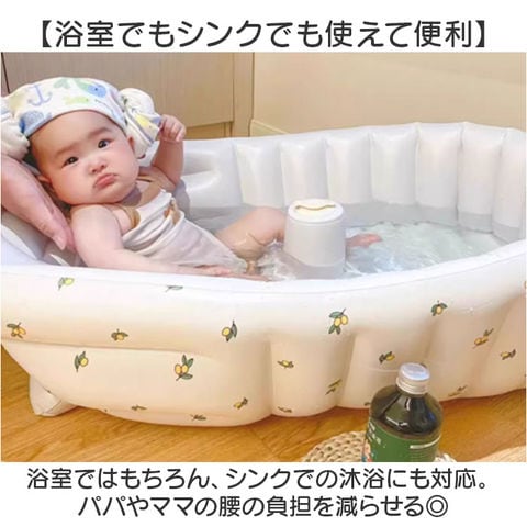 | 商品説明 | 【新生児期の沐浴を優しくサポート】親子のスキンシップを深める、毎日の沐浴時間を快適に!使い勝手の良い「ベビーバス」。【空気入れ不要のエアポンプタイプ】空気栓を閉め、ポンプを上下に動かすだけ。市販の空気入れいらずで、簡単に膨らむ仕様。【赤ちゃんのずり落ちをガード】膨らむとポンプ部分がストッパーの役割を果たし、赤ちゃんが滑ってもしっかりキャッチ。【浴室でもシンクでも使えて便利】浴室ではもちろん、シンクでの沐浴にも対応。パパやママの腰の負担を減らせる◎【ひっくり返さずスムーズに排水】ベビーバスを少し持ち上げて、止水栓から下へ排水。面倒な後片づけも、ひと手間を軽減。【収納も持ち運びもラクラク】空気を抜いて、コンパクトに折りたためる!収納もかさばらず、旅行などへの持ち運びにも。 |