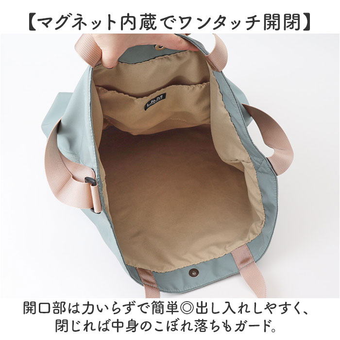 | 商品説明 | 【気取らず持ち歩けて頼れる相棒】日常使いに最適な機能性とデザインを両立。「L.R.M ポリ2WAYトート」。【アクティブなスタイルを気軽に】より日常的に、多様なシーンで活躍するファッション性を広げることがコンセプトのL.R.M。【軽やかな使い心地でノンストレス】柔らかな質感の素材を使った軽量設計。体に負担をかけず、お出掛けをサポート。【お好みに合わせてスタイルチェンジ】手持ちで。ショルダーの長さを調節して、肩掛けや斜め掛けもできる2WAYタイプ!【マグネット内蔵でワンタッチ開閉】開口部は力いらずで簡単◎出し入れしやすく、閉じれば中身のこぼれ落ちもガード。【A4対応でざっくりひとまとめ】A4が横向きに。必要な荷物が1つに収まり、通勤通学から休日のお出掛けまでお任せ☆【サクッと取り出せて迷子知らず】内側・外側に1つずつポケットを配置。バッグの中で、小物を探す手間が不要。【お揃いOK☆ユニセックスデザイン】持つ人を選ばないシンプルな仕上がり&お気に入りが見つかるカラー。お揃いやシェアも!【ポケット仕様】内側:オープンポケット×1サイド:縦ファスナーポケット×1 |