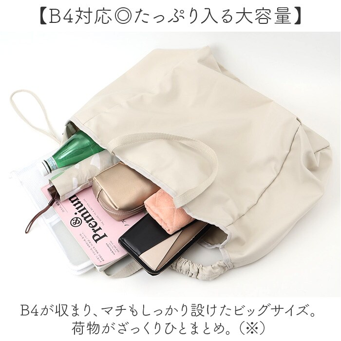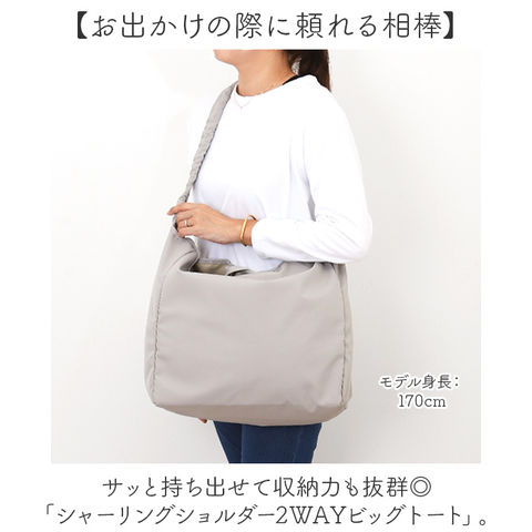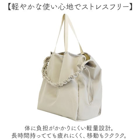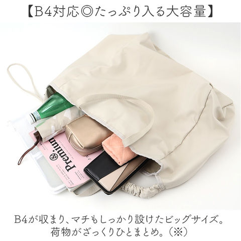 | 商品説明 | 【お出かけの際に頼れる相棒】サッと持ち出せて収納力も抜群◎「シャーリングショルダー2WAYビッグトート」。【くしゅっと可愛いシャーリング♪】ショルダーをのコードを引っ張って結ぶと、くしゅっと感をプラス。ちょっとしたアクセントに!【お好みに合わせてスタイルチェンジ】ハンドルを使って手持ちや肩掛け。ショルダーを使って斜め掛けも自在な2way仕様☆【軽やかな使い心地でストレスフリー】体に負担がかかりにくい軽量設計。長時間持ってても疲れにくく、移動もラクラク。【マグネット式でワンタッチ開閉】開口部は力いらずで簡単◎大きく開いて出し入れしやすく、閉じれば中身の飛び出しもガード。【B4対応◎たっぷり入る大容量】B4が収まり、マチもしっかり設けたビッグサイズ。荷物がざっくりひとまとめ。(※)A3も収まるサイズ感ですが、フォルムが崩れたり角が折れてしまう可能性があります。【サクッと取り出せて迷子知らず】内側に吊りポケットを1つ配置。細々した物も、バッグの中で探す手間が不要。【色んなシーンで使えて万能】マザーズバッグやお買い物バッグ、ジムやヨガ、ランドリー。旅行などにもおすすめ。【使い方次第でユニセックス仕様に】シャーリングを付けない状態では、シンプルなトート。性別問わず使えるのも嬉しい!【ポケット仕様】内側:吊りポケット×1 |