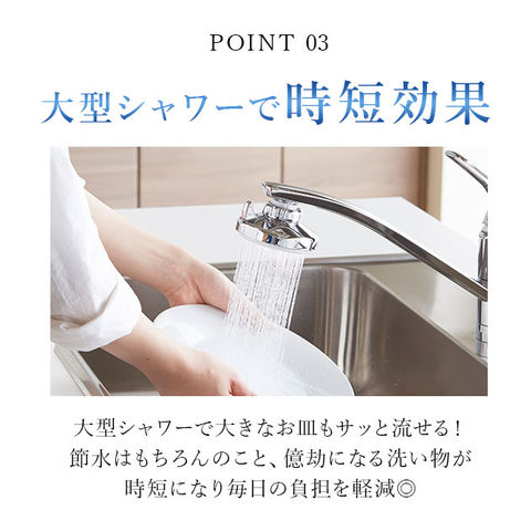 | 商品説明 | 【クリシャワー プロ DXの商品詳細】水道水をシャワーとストレートに簡単に切替できます。節水ユニットを本体にセットする事で、より節水する事ができます。お湯(60度以下)にも使用できます。大型シャワーで効率的に洗い物ができます。節水ユニットAで約50%、節水ユニットBで約60%の節水効果があります。 |