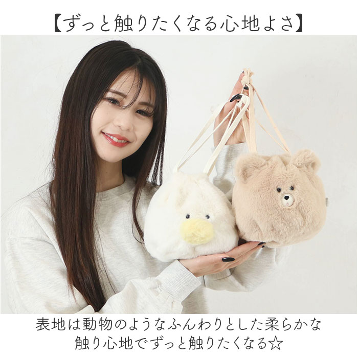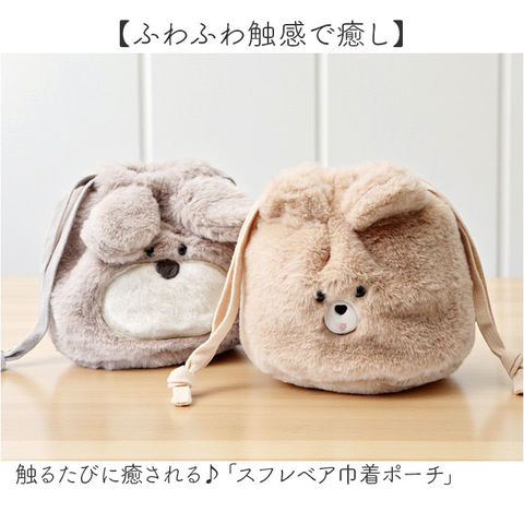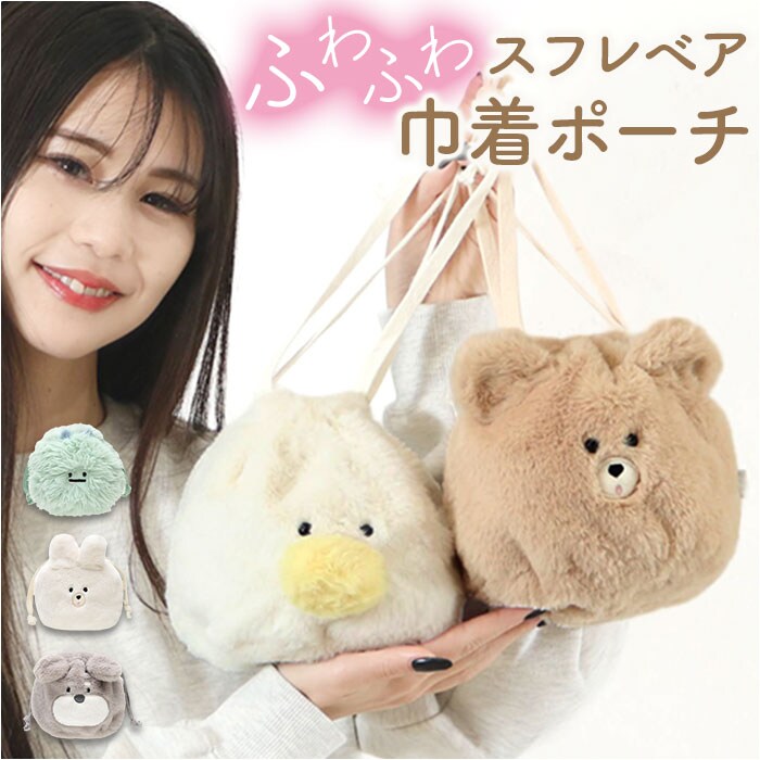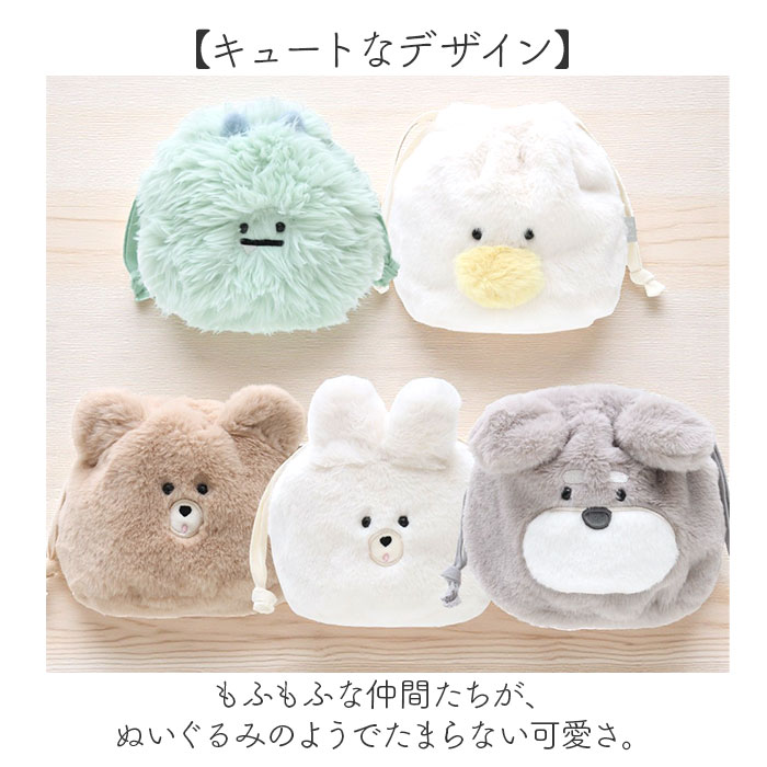 | 商品説明 | 【ふわふわ触感で癒し】触るたびに癒される♪「スフレベア巾着ポーチ」【使いやすいサイズ感】ポーチ代わりにはもちろん、ミニ財布やスマホなどを入れてちょうっとした外出にも◎【メイク用品や小物収納に】サイドの巾着紐をキュッと絞るだけで簡単開閉。内側にはオープンポケット×2。【ずっと触りたくなる心地よさ】表地は動物のようなふんわりとした柔らかな触り心地でずっと触りたくなる☆【キュートなデザイン】もふもふな仲間たちが、ぬいぐるみのようでたまらない可愛さ。 |