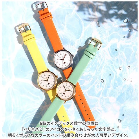 | 商品説明 | ハリネズミのモチーフが可愛らしいワンポイント♪大人気「スカンジナビアフォレスト」から、日常に“ほっこり”優しさを添える腕時計が新登場。【フェミニンな腕元を演出】6時のインデックス数字の位置に「ハリネズミ」のアイコンを小さくあしらった文字盤と、明るくポップなカラーのバンドの組み合わせが大人可愛いデザイン。【選べる文字盤デザイン】落ち着いた色合いの「北欧テイストカラー」と天然の貝殻を丁寧に加工した「シェル」タイプの2種類の文字盤が、手首周りに上品さをプラス♪アクセサリー感覚で手軽に身に着けられるのも嬉しいポイント。【小ぶりなアナログフェイス】ひと目で時間が読みやすいシンプルな文字盤と、女性の華奢な手首にさりげなく映える小ぶりなアナログフェイスで、オフィスや普段使いでもマルチに大活躍。【安心の日常生活防水仕様】パウダールームでの化粧直しや、水仕事の時でも安心な日常生活用防水(3気圧)。(※水分が付いたまま、リュウズの操作をしないようにしてください。濡れた場合は、柔らかな布で水分を拭き取ってください。)【プチギフトにもオススメ】トレードマークのハリネズミのシルエットが浮かび上がる、清潔感溢れるホワイトのパッケージ入り。お世話になった方やご友人へのプチギフトにオススメ。【About SCANDINAVIAN FOREST】・「スカンジナビアン・フォレスト」は、「MOZ」の姉妹ブランドとしても有名なスウェーデン発の北欧雑貨ブランド。「ハリネズミ」のアイコンはテキスタイルデザイナーAnna Bergerが生み出したデザイン。 |
