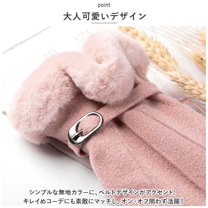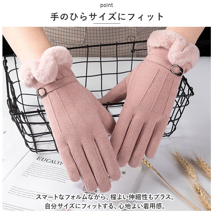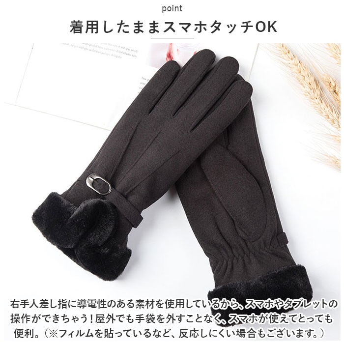 | 商品説明 | そのままラクラク、スマホ操作!寒い季節もおしゃれに防寒できる手袋が新登場。【着用したままスマホタッチOK】右手人差し指に導電性のある素材を使用しているから、スマホやタブレットの操作ができちゃう!屋外でも手袋を外すことなく、スマホが使えてとっても便利。(※フィルムを貼っているなど、反応しにくい場合もございます。)【ふんわり柔らかな質感】裏面は柔らかなボア素材。チクチク感がなく、手元を優しくカバーして保温性もアップ。【手のひらサイズにフィット】スマートなフォルムながら、程よい伸縮性もプラス。自分サイズにフィットする、心地よい着用感。【大人可愛いデザイン】シンプルな無地カラーに、ベルトデザインがアクセント。キレイめコーデにも素敵にマッチし、オン・オフ問わず活躍! |