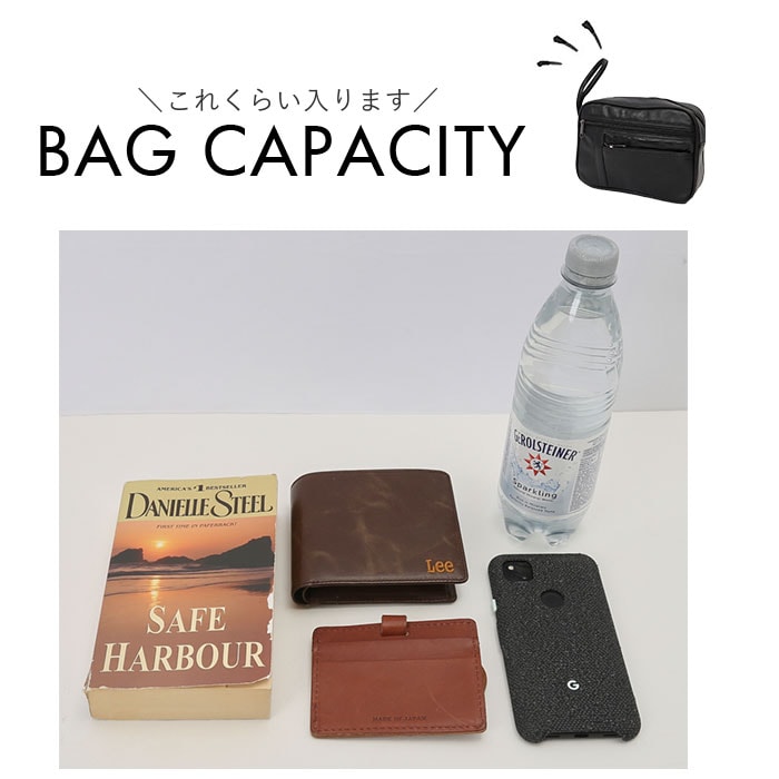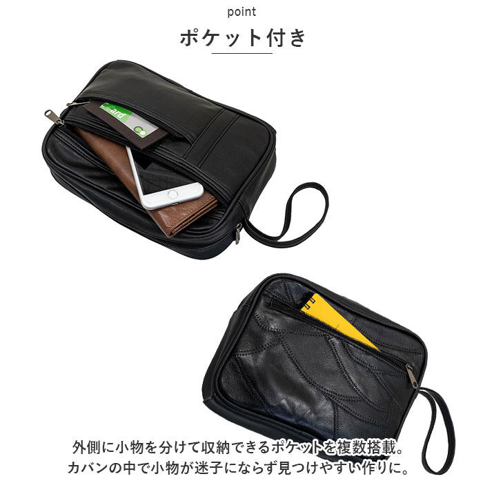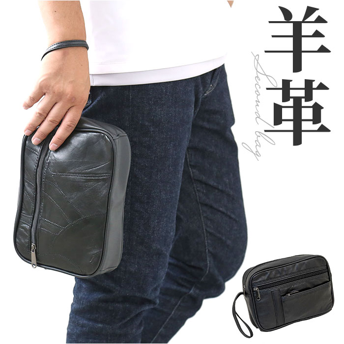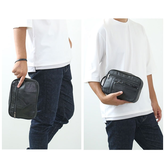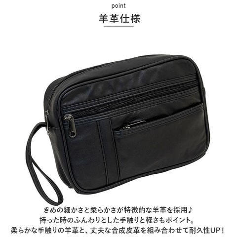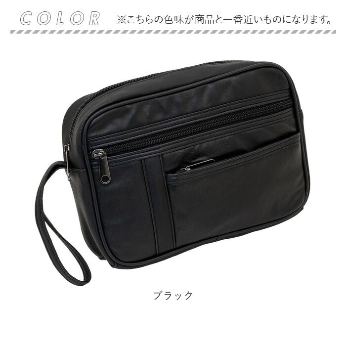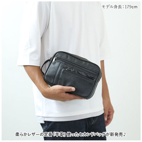 やわらかレザーのセカンドバッグ【ブラック】