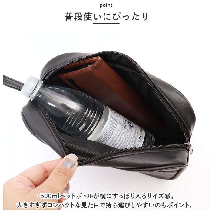 | 商品説明 | 柔らかレザーの定番「羊革」使ったセカンドバッグが新発売♪【羊革仕様】きめの細かさと柔らかさが特徴的な羊革を採用♪持った時のふんわりとした手触りと軽さもポイント。柔らかな手触りの羊革と、丈夫な合成皮革を組み合わせて耐久性UP!【普段使いにぴったり】・500mlペットボトルが横にすっぽり入るサイズ感。大きすぎずコンパクトな見た目で持ち運びしやすいのもポイント。【ポケット付き】外側に小物を分けて収納できるポケットを複数搭載。カバンの中で小物が迷子にならず見つけやすい作りに。【ストラップ付き】手持ちで使いやすいハンドルストラップ付き。【ポケット仕様】フロント・・・ファスナーポケット×2背面ファスナーポケット×1 |