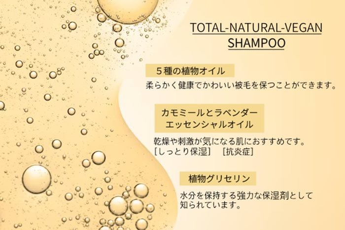 | 商品説明 | 完全天然・ヴィーガン ペットケア製品完全天然・ヴィーガン及び完全天然・オーガニック ペットケア製品は、100%自然に根ざしたオイルを使用し、カミツレ花エキスと植物由来のグリセリンを配合しています。これにより、ペットの被毛を優しく効果的に洗浄し、柔らかく健康的な被毛を保ちます。【主な特長】パラベン不使用SLS(界面活性剤)不使用天然、低温圧搾オイル100%ナチュラル&ヴィーガン |