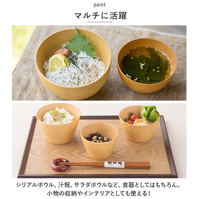 | 商品説明 | 天然木を使用。ひとつひとつ違う、ぬくもりのある表情が魅力の「ウッドマルチボール 中」が登場。【天然木を使用】天然木ならではのぬくもりを感じるアイテム。食卓で使っても、小物入れとしても、そこに置くだけで様になる佇まい。【表情を愉しむ♪】天然のモノだから、ひとつひとつ違った表情を魅せてくれる♪見る角度によって変化する、味わい深さを愉しめる逸品。【食洗機OK】イージーケアが嬉しい、食洗機対応のアイテム。現代の生活に合った仕様なので、毎日の食卓でも大活躍。【ナチュラルテイスト】お部屋や空間にすっと馴染むナチュラルテイスト。洋室でも和室でも、お食事にもおやつにも、幅広くマッチ。【選べる2タイプ】底丸型と底平型の選べる2タイプ。同タイプで集めても、別タイプ同士で集めてもおしゃれ。【マルチに活躍】シリアルボウル、汁椀、サラダボウルなど、食器としてはもちろん、小物の収納やインテリアとしても使える!【ギフトにも】結婚祝い、出産祝い、記念日、誕生日などのギフトにオススメのアイテム。 |
