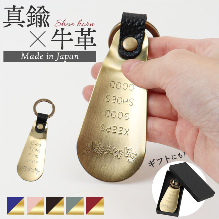 | 商品説明 | 【靴への足入れを優しくサポート】見た目も美しく、特別感のある「SAMTIAS ハンドシューホーンプラス」。【スタイリッシュなデザインが魅力】アンティック色の真鍮に、牛革とリングをプラス。カシメやリングもアンティックにメッキ。【携帯しやすく使い勝手も抜群】スマートに持ち歩けるサイズ感。手に馴染みやすく、スムーズに履けて靴へのダメージも軽減。(※)リングを使って、カラビナなどに吊り下げも可能です。【贈り物にもおすすめのアイテム】年代問わず使えるデザインに、専用ボックス付き。日本製でギフトにもぴったり◎ |
