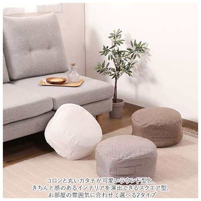 | 素材 | [ライトブラウン(ラウンド、スクエア)、ブラウン(ラウンド、スクエア)]ポリエステル100% [アイボリー(ラウンド、スクエア)]綿60%、ポリエステル40% |