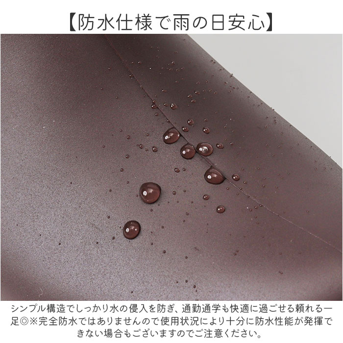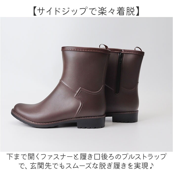 | 商品説明 | 【雨の日も快適なスタイル】サイドジップで脱ぎ履き楽々、雨の日のお出かけを上品に彩るレインブーツ【サイドジップで楽々着脱】下まで開くファスナーと履き口後ろのプルストラップで、玄関先でもスムーズな脱ぎ履きを実現♪【防水仕様で雨の日安心】シンプル構造でしっかり水の侵入を防ぎ、通勤通学も快適に過ごせる頼れる一足◎※完全防水ではありませんので使用状況により十分に防水性能が発揮できない場合もございますのでご注意ください。 【滑りにくい安全設計】しっかりとしたグリップ力のあるソールで、雨に濡れた路面でも安心して歩ける〇【通勤にも馴染むデザイン】きれいめシンプルなフォルムで、オフィススタイルにも上品に合わせられるアイテム。【軽量で疲れにくい履き心地】長時間の着用でも負担が少なく、梅雨の季節も快適に過ごせる実用性の高さが魅力! |