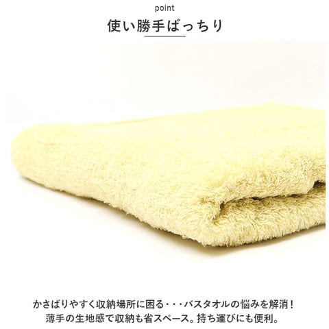 | 商品説明 | 最低限の機能でちょこっと便利に。洗濯脱水するだけですぐ乾くタオルシリーズから、バスタオルが新登場。【マイクロファイバーとコットンのイイトコドリ】吸水・速乾性に優れたマイクロファイバーの機能性と、天然繊維であるコットンの風合いを兼ね備えたバスタオル。柔らかな肌あたりで、水分もどんどん吸収!【洗濯脱水後にすぐ乾く!】マイクロファイバーの吸水作用とパイルに中空糸を使用することにより、吸水力がアップ。水分が抜けやすく、洗濯脱水するだけで速乾力が加速◎【使い勝手ばっちり】かさばりやすく収納場所に困る・・・バスタオルの悩みを解消!薄手の生地感で収納も省スペース。持ち運びにも便利。【選べるカラー】色違いで揃えたくなる、ナチュラルなカラーをラインナップ。自宅や旅先、ジムなどで大活躍! |