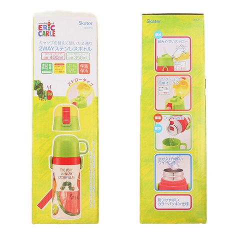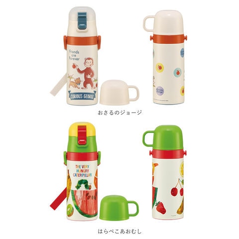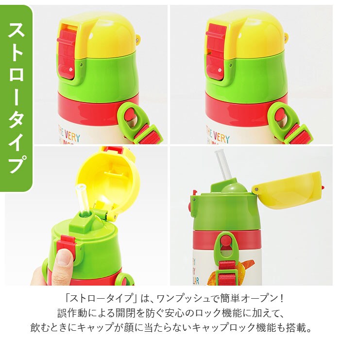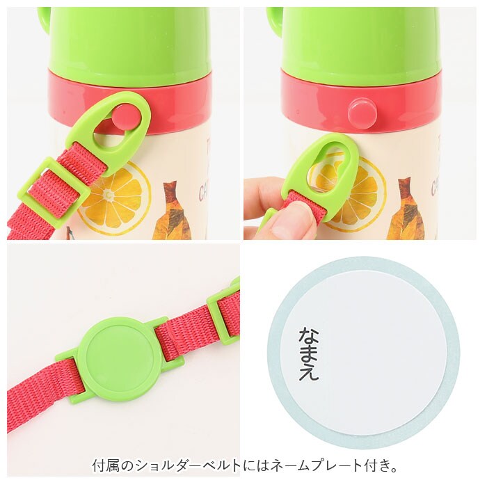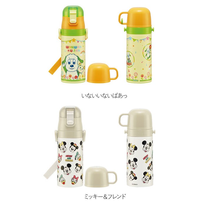 | 商品説明 | キャップを付け替えて、使い方2通り!子供用2WAYステンレスボトル(350mlタイプ)が新登場。温かいお茶も冷たいドリンクも、飲み頃温度を保って美味しく楽しめるステンレス真空二重構造採用。飲み口がぴょこんと飛び出してすぐに飲める「ストロータイプ」と、温かい飲み物もOKの「コップ飲みタイプ」の2種類のキャップが付属。(※ストロータイプで飲む際は、熱い飲み物を入れないでください。)・「ストロータイプ」は、ワンプッシュで簡単オープン!誤作動による開閉を防ぐ安心のロック機能に加えて、飲むときにキャップが顔に当たらないキャップロック機能も搭載。・「コップ飲みタイプ」のキャップに付け替えれば、じんわりコップの温かさを感じながら、熱々のお茶を味わう時に最適。ボトル開口部が広口になったワイド設計で、飲み物に氷が入れやすく、毎朝のドリンクの準備がより手軽に。パッキンはキャップユニットからつけ外しができて、分解洗浄が簡単!水切りカゴで迷子にならず、見つけやすいカラーパッキン仕様。調節のできるショルダーベルトで肩掛けにすれば、遠足やピクニックに出かける時もお子さまご自身で持ち運びしやすい、軽量コンパクト設計。付属のショルダーベルトにはネームプレート付きなので、お友達のボトルとの取り違えもしっかり防止♪いつものお弁当タイムもお楽しみイベントも大活躍!元気キッズが笑顔になる、大人気キャラクターが大集合。※「ストロータイプ」使用時の容量は約400ml。「コップ飲みタイプ」使用時の容量は約350mlとなります。 |