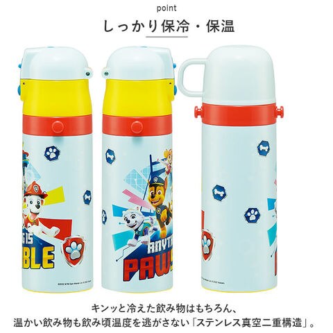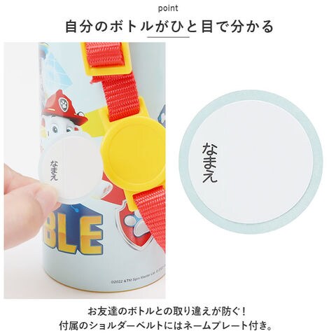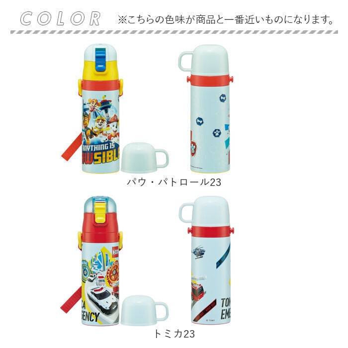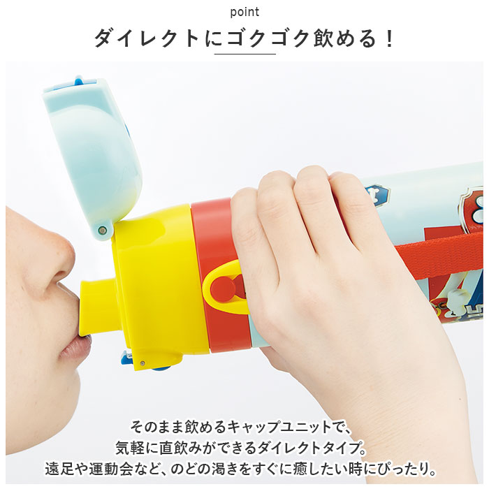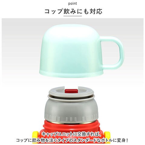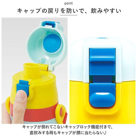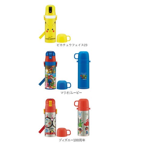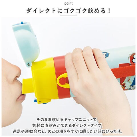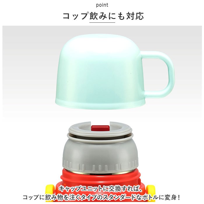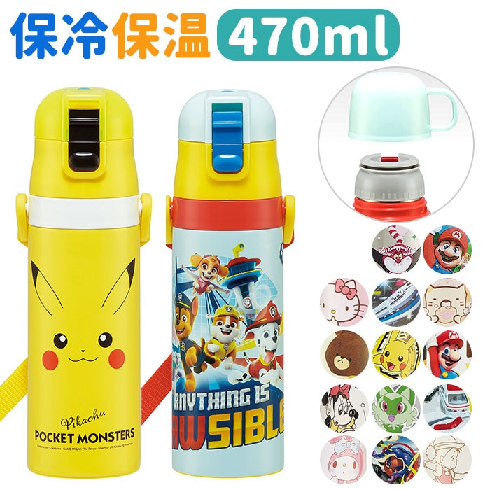 | 商品説明 | キャップを替えて使い方2通り!直飲みとコップ飲み、どちらにも対応した2WAYステンレスボトル(470mlタイプ)。【使い分けのできる2WAY】2種類ある飲み口を付け替えて、直接口を付けて飲める「ダイレクトタイプ」と、温かい飲み物もOKの「コップ飲みタイプ」で使い分け!【ダイレクトにゴクゴク飲める!】そのまま飲めるキャップユニットで、気軽に直飲みができるダイレクトタイプ。遠足や運動会など、のどの渇きをすぐに癒したい時にぴったり。(※ダイレクトタイプを使用する際は保冷専用です。熱い飲み物を入れてのご使用はできません。)【安心のロック機能付き】キャップは、ワンプッシュで簡単オープン!誤作動による開閉を防ぐロック機能付き。【キャップの戻りを防いで、飲みやすい】キャップが倒れてこないキャップロック機能付きで、直飲みする時もキャップが顔に当たらない♪【コップ飲みにも対応】キャップユニットに交換すれば、コップに飲み物を注ぐタイプのスタンダードなボトルに変身!(※コップ飲み専用キャップユニットでご使用時には、温かい飲み物にもご使用いただけます。)【ワイド広口設計】キャップユニットを外すと、ボトル開口部が広口になったワイド設計。飲み物に氷が入れやすく、毎朝のドリンクの準備がラクラク。【しっかり保冷・保温】キンッと冷えた飲み物はもちろん、温かい飲み物も飲み頃温度を逃がさない「ステンレス真空二重構造」。【自分のボトルがひと目で分かる】お友達のボトルとの取り違えが防ぐ!付属のショルダーベルトにはネームプレート付き。【超軽量・コンパクト】ベルトでサッと肩に掛けて、遠足やピクニックに出かける時もお子さまご自身で持ち運びしやすい、軽量コンパクト設計。【ご使用シーンに合わせて】学校や幼稚園では「コップ飲みタイプ」。公園やピクニックへのお出掛けは「直飲みタイプ」。使分けができて、本当に便利!【お気に入りがきっと見つかる!】ポケモンやすみっコぐらしなど、男の子にも女の子にも大人気のキャラクターの柄を豊富にラインナップ。 |