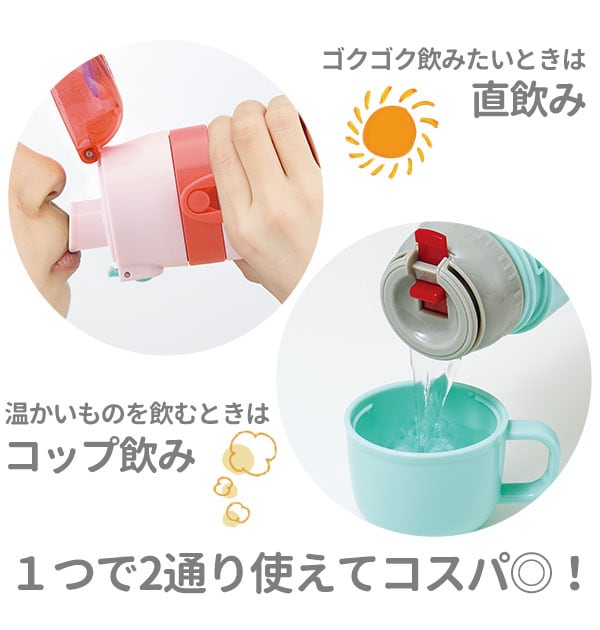 | 容量 | 直飲みタイプ:470ml、コップ飲みタイプ:430ml |