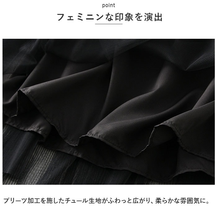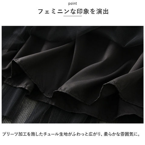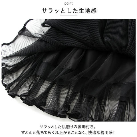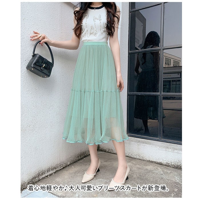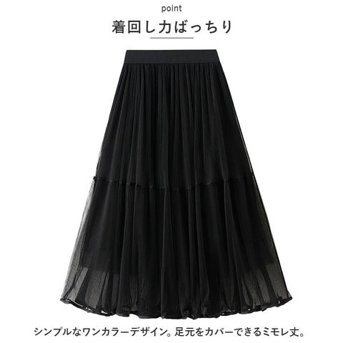 | 商品説明 | 着心地軽やか♪大人可愛いプリーツスカートが新登場。【フェミニンな印象を演出】プリーツ加工を施したチュール生地がふわっと広がり、柔らかな雰囲気に。【着回し力ばっちり】シンプルなワンカラーデザイン。お手持ちのTシャツやブラウスなどと合わせて、おしゃれにコーディネート♪足元をカバーできるミモレ丈。【ストレスフリー】締めつけ感のないウエストゴム仕様で、心地よくフィット◎着脱もラクチン。【サラッとした生地感】サラッとした肌触りの裏地付き。すとんと落ちてめくれ上がることなく、快適な着用感!【選べるカラー】表情の異なる5カラー。なりたいイメージや、アイテムとの相性でチョイス♪ |