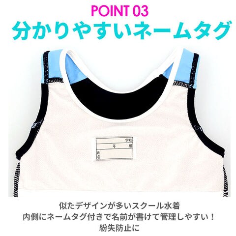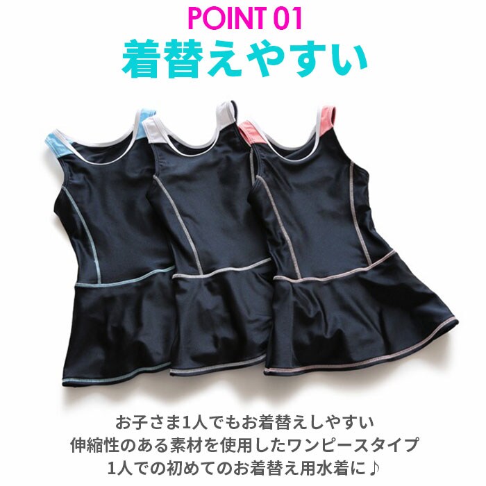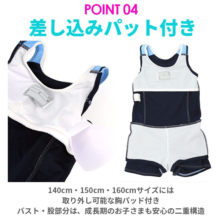 | 商品説明 | シンプルなデザインで使いやすい、スクール水着(ワンピースタイプ)が発売。お子さま1人でもお着替えしやすい、伸縮性のある素材を使用したワンピースタイプ。スカートと一体型ショートパンツでWガード!ビキニ焼けの心配がなく、お腹の冷えを防止。ふわっと広がるスカートで、ヒップラインをおしゃれに隠せるのが嬉しい◎バスト・股部分は、成長期のお子さまも安心の二重構造。140cm・150cm・160cmサイズには取り外し可能な胸パッド付きで、バストを優しくカバー。内側にネームタグ付きだから、お友達とお揃いでも大丈夫。各所に施されたライン使いがアクセント。学校の授業やプール教室、レジャーで活躍。 |