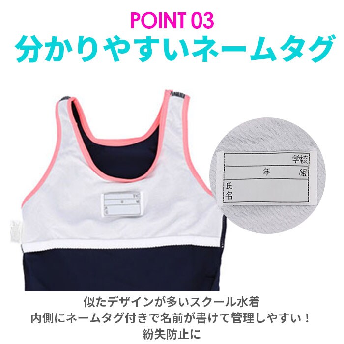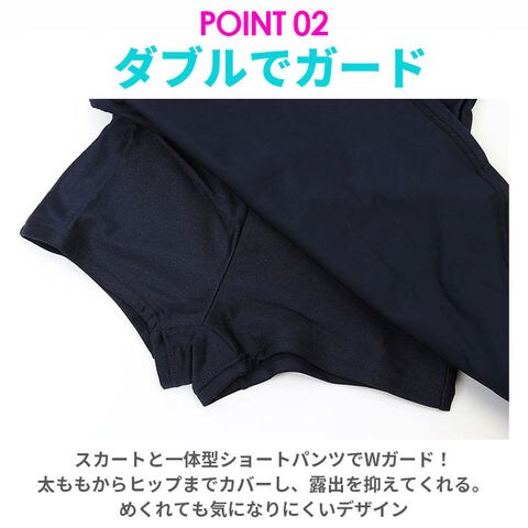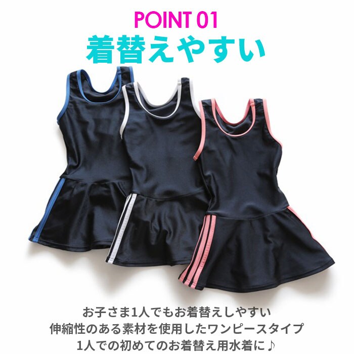 | 商品説明 | シンプルなデザインで使いやすい、スクール水着(ワンピースタイプ)が発売。お子さま1人でもお着替えしやすい、伸縮性のある素材を使用したワンピースタイプ。スカートと一体型ショートパンツでWガード!ビキニ焼けの心配がなく、お腹の冷えを防止。ふわっと広がるスカートで、ヒップラインをおしゃれに隠せるのが嬉しい◎バスト・股部分は、成長期のお子さまも安心の二重構造。140cm・150cm・160cmサイズには取り外し可能な胸パッド付きで、バストを優しくカバー。内側にネームタグ付きだから、お友達とお揃いでも大丈夫。スカート部分両サイドの3本ラインがアクセント!学校の授業やプール教室、レジャーで活躍。 |