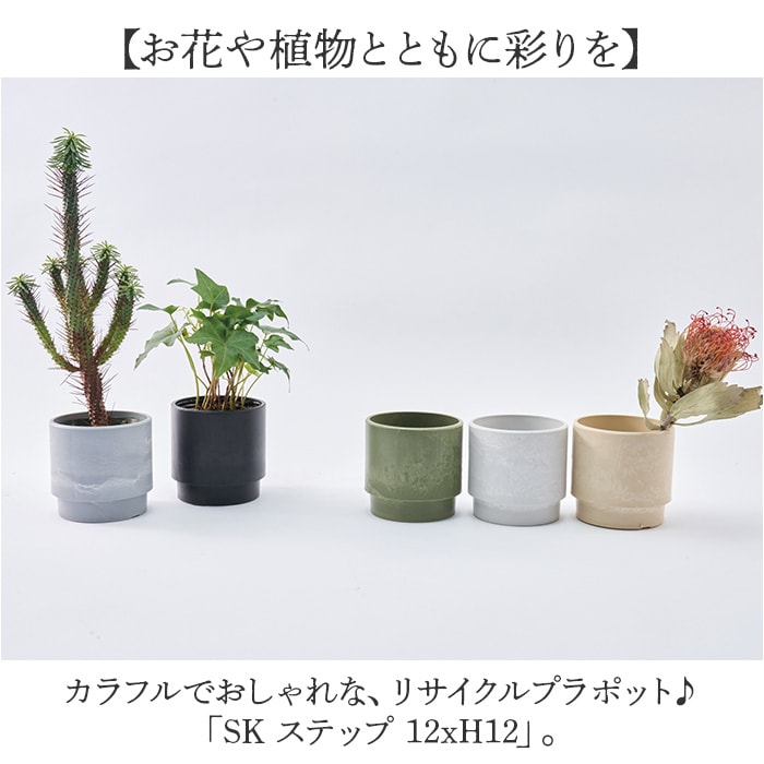 | 商品説明 | 【お花や植物とともに彩りを】カラフルでおしゃれな、リサイクルプラポット♪「SK ステップ 12xH12」。【環境に優しいリサイクル素材】廃プラスチックを活用した、リサイクル素材を採用。エコに繋がるアイテム◎【ツヤのないナチュラルな仕上がり】木粉を混ぜることでツヤを消し、マットな質感に。シンプルで飽きが来ず、高見えする仕上がり。【耐久性があるので、割れにくい】石粉を混ぜることにより、軽量ながら丈夫。軽度の落下などであれば、割れにくいのもポイント。【水漏れせず、使い勝手抜群】耐酸化性・耐食性に優れ、水漏れしない素材。アレンジや鉢カバーにセロハンのセットも不要。【スタッキングできてストックに最適】筒形の器に段差を付けることで、重ね置きOK。お花屋さんなどでのストックも省スペース。【アレンジ自在で使い方いろいろ】ドリルなどの工具で、穴開けも可能。鉢カバーや、フラワーアレンジメント用としても重宝◎(※)フラワーアレンジメント用として使用する際は、フローラルフォーム(吸水スポンジ)をご用意ください。苗3.5号サイズに適応。【選ぶのも楽しいカラーリング】落ち着いた色合いや、アクセントになるカラーを豊富にラインナップ。色違い揃えもおすすめ☆ |